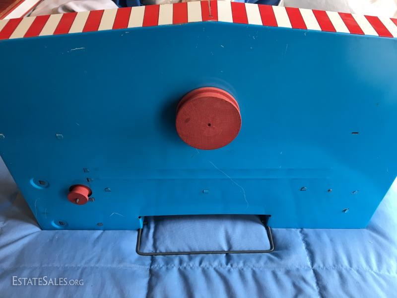 Measuring 17-1/4" long X 11" h X 2-1/4". Deep approx. Has Handle/ Stand....Deer, Bear, 5" Bunny Wheel, 5 Ducks....