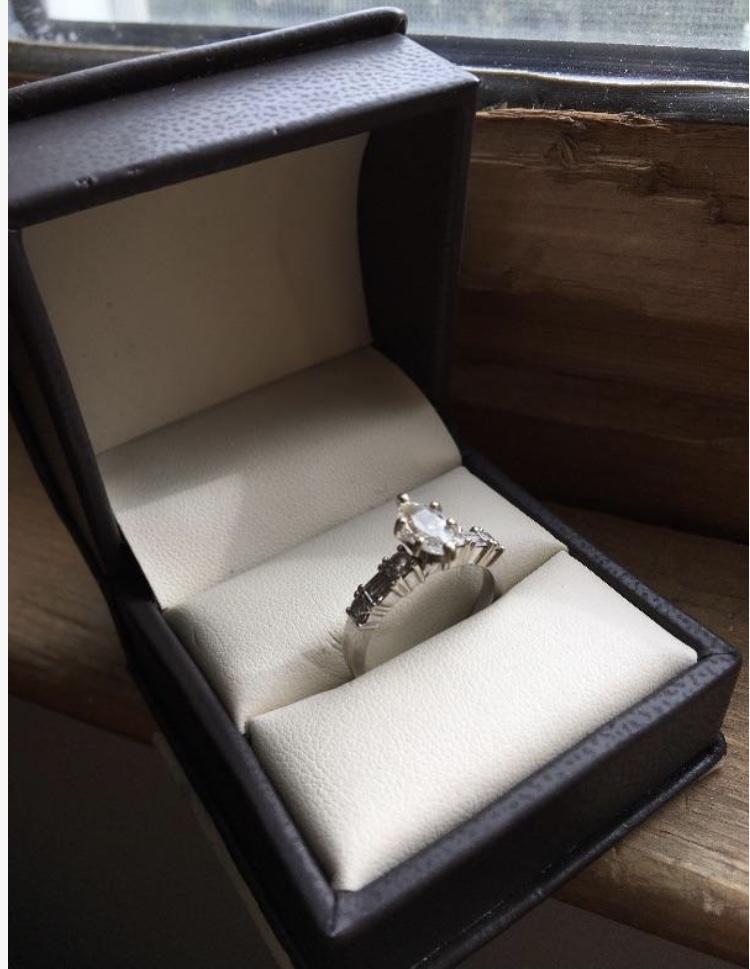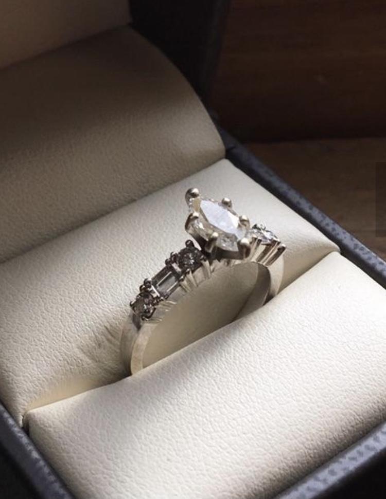 Vintage 1 carat Marquis Diamond Engagement Ring 18k White Gold Size 7