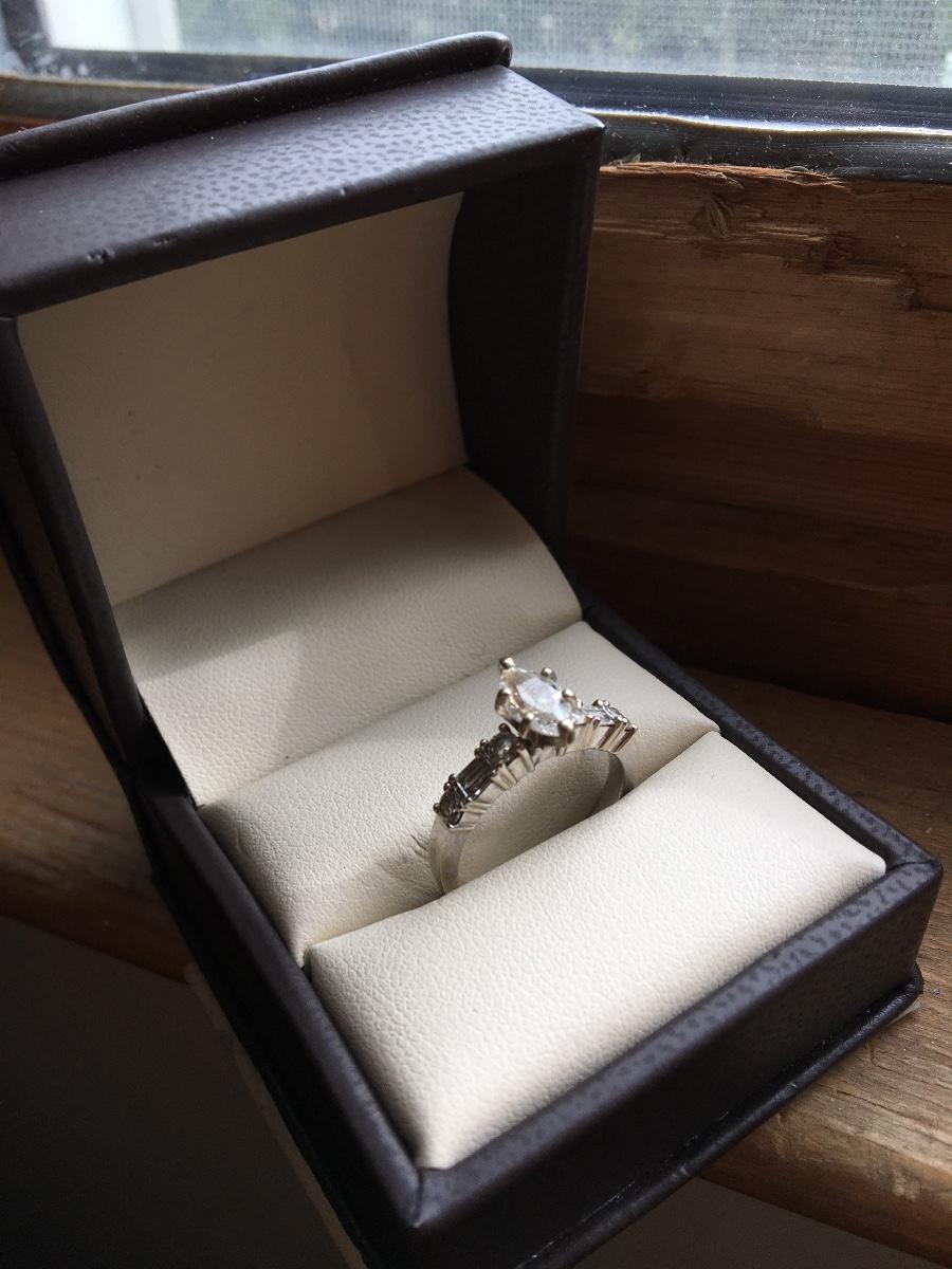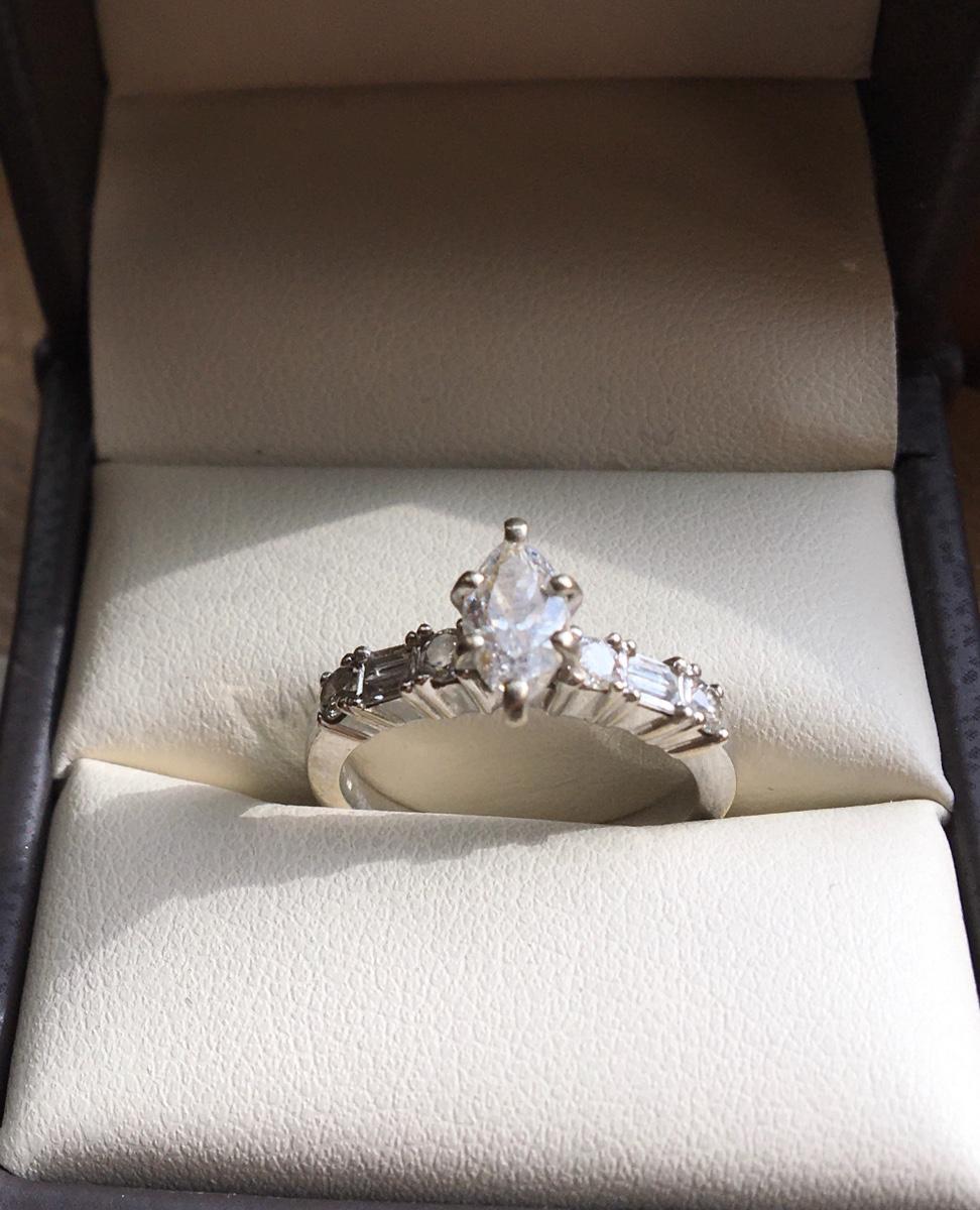 Vintage 1 carat Marquis Diamond Engagement Ring 18k White Gold Size 7