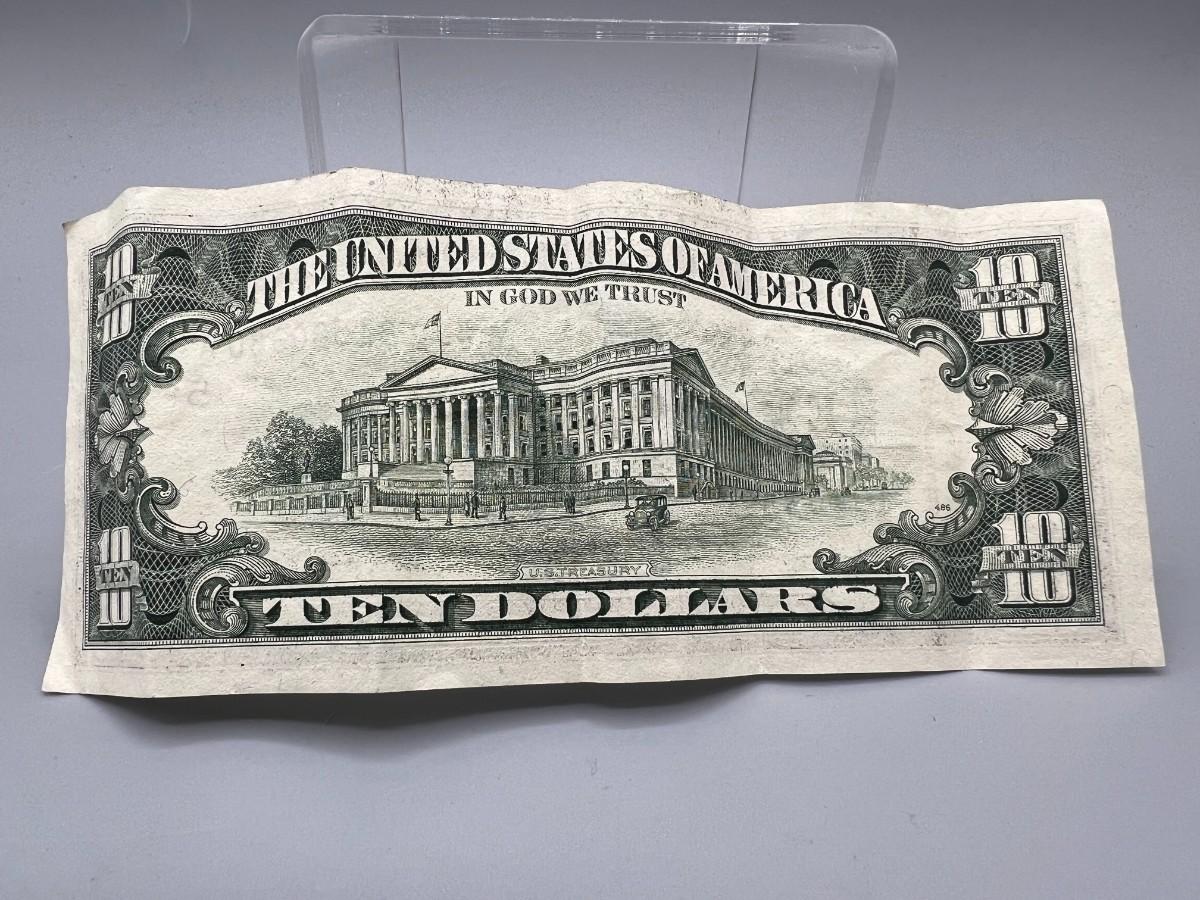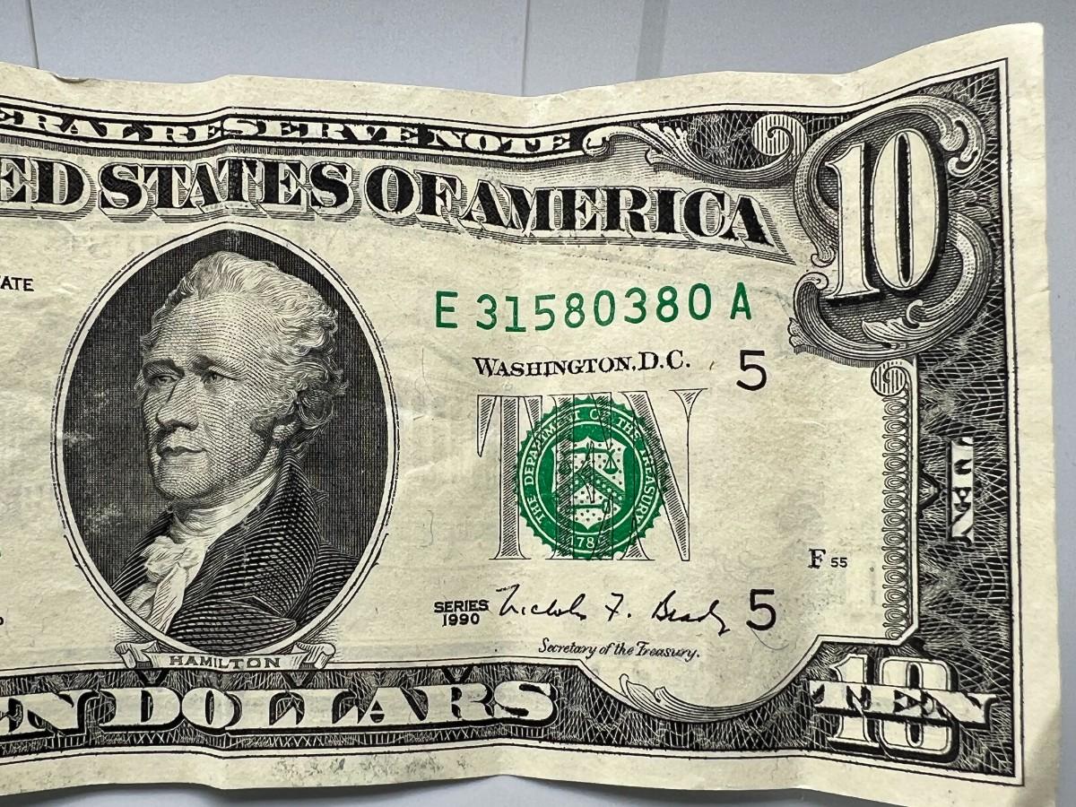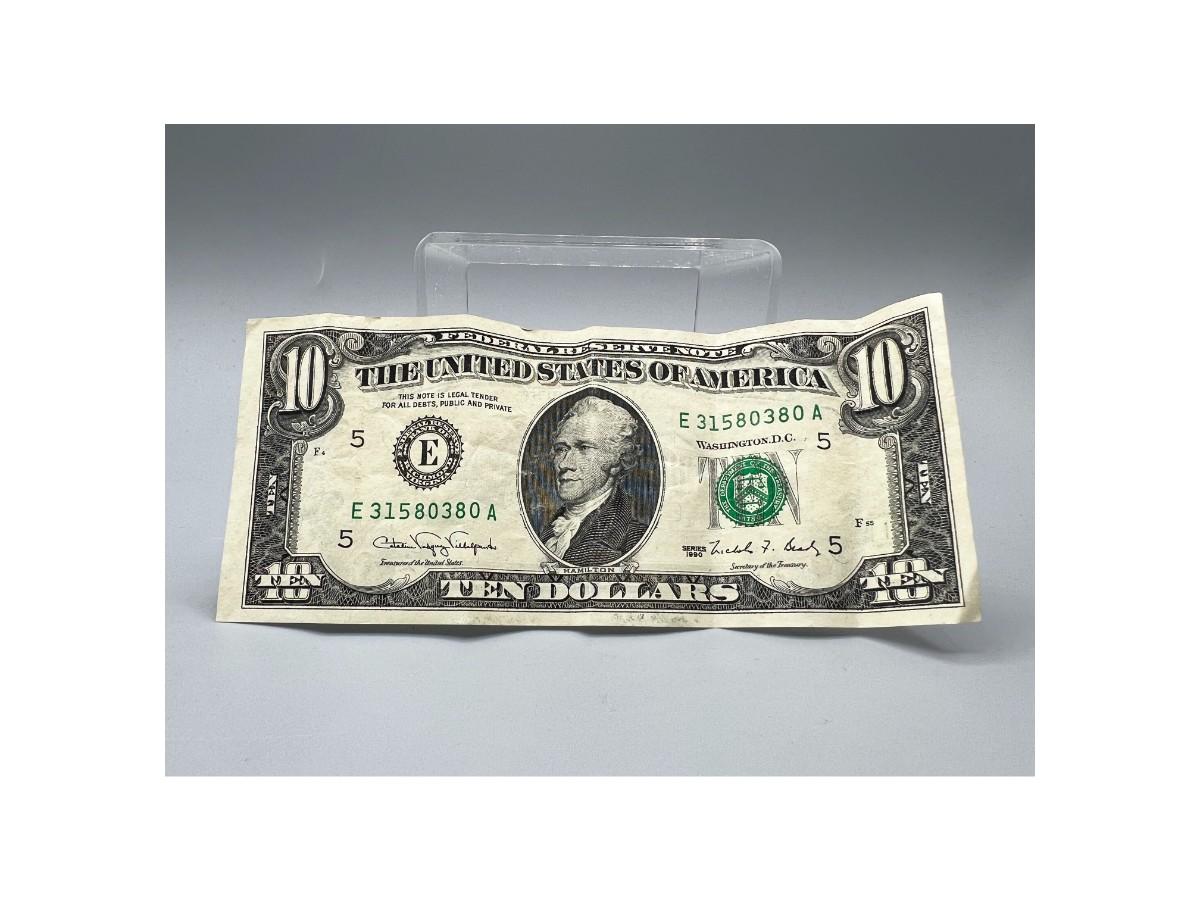 Vintage $10 Dollar Bill 1990 Series Federal Reserve Note Richmond Virginia Federal Bank US Currency, there is no signifncant rips or tears and is in good collectible condition. The bill is crisp, but has been circulated and folded. Check pictures for more details.