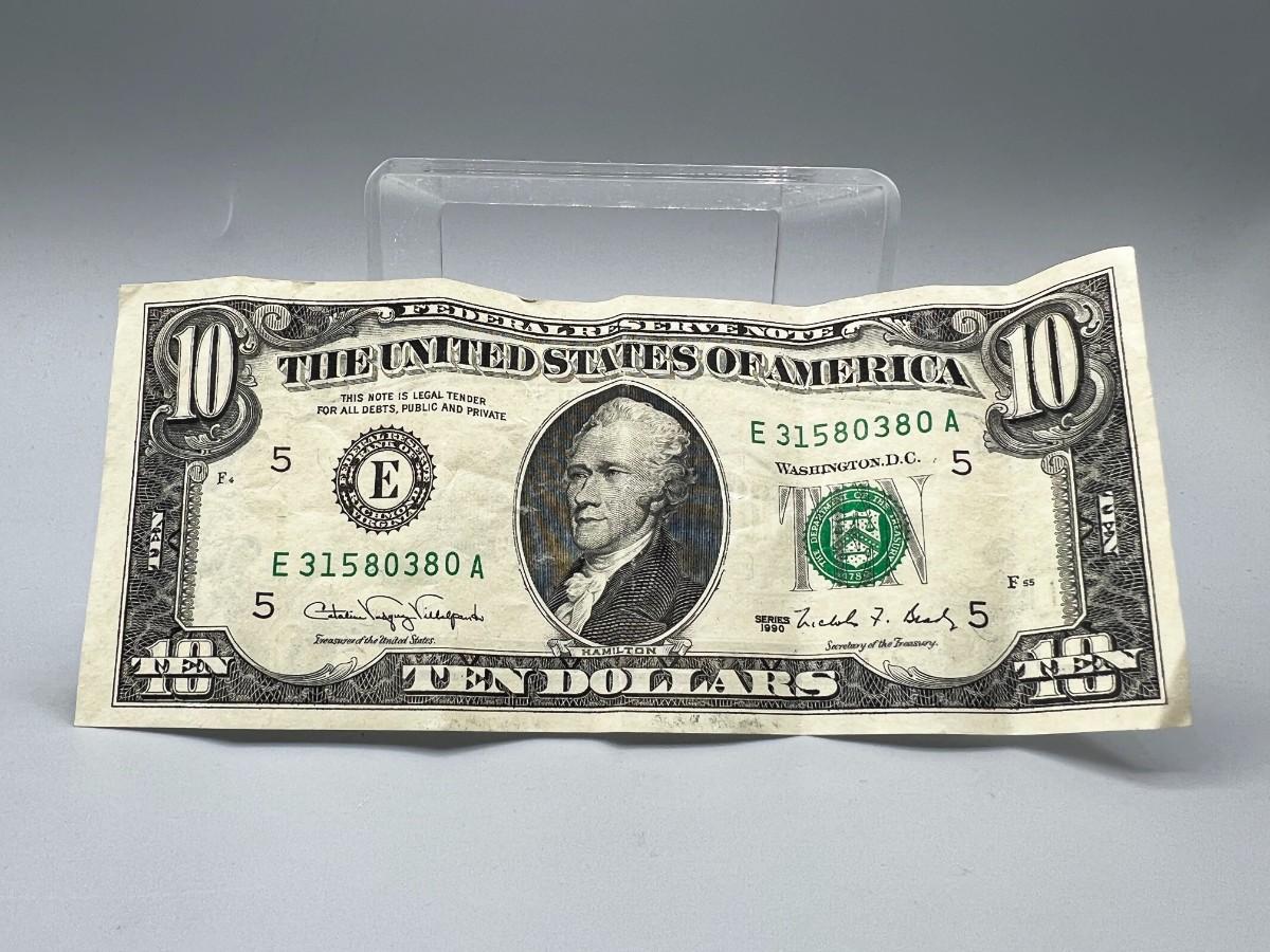 Vintage $10 Dollar Bill 1990 Series Federal Reserve Note Richmond Virginia Federal Bank US Currency