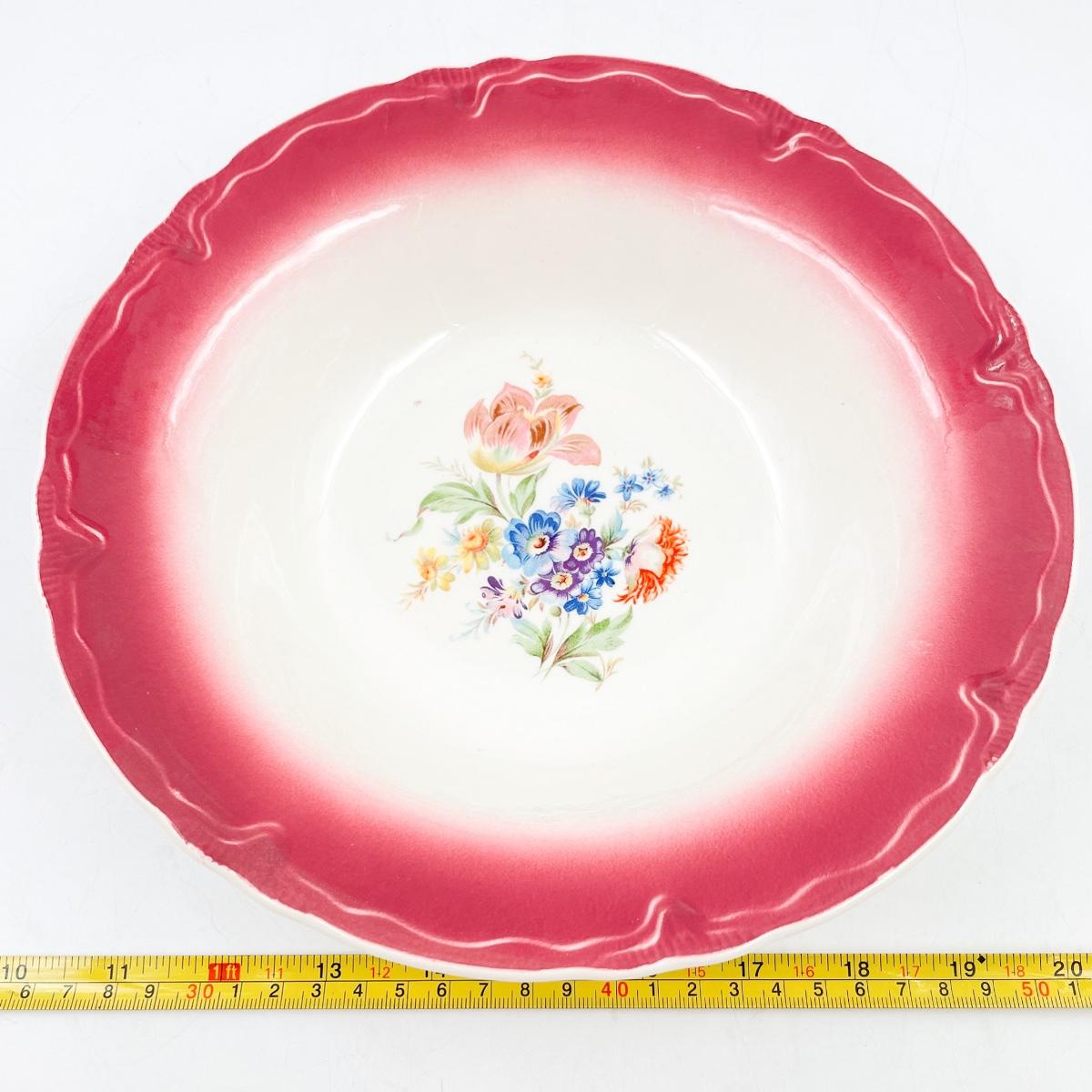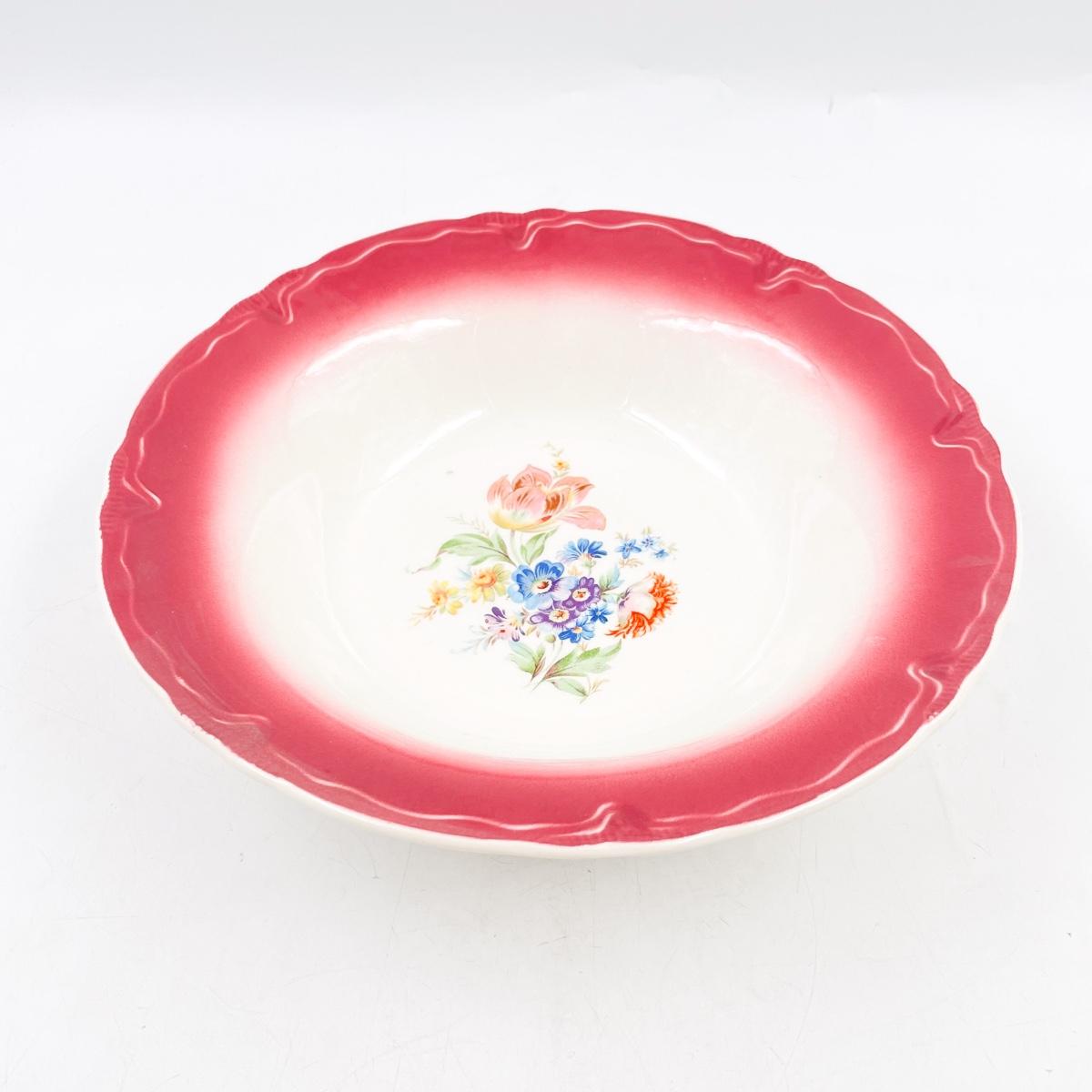 VINTAGE 10” RED/PINK BAND FLORAL BOWL