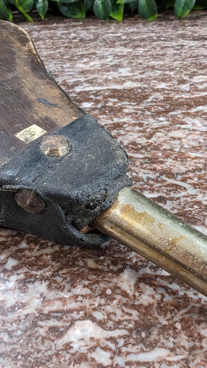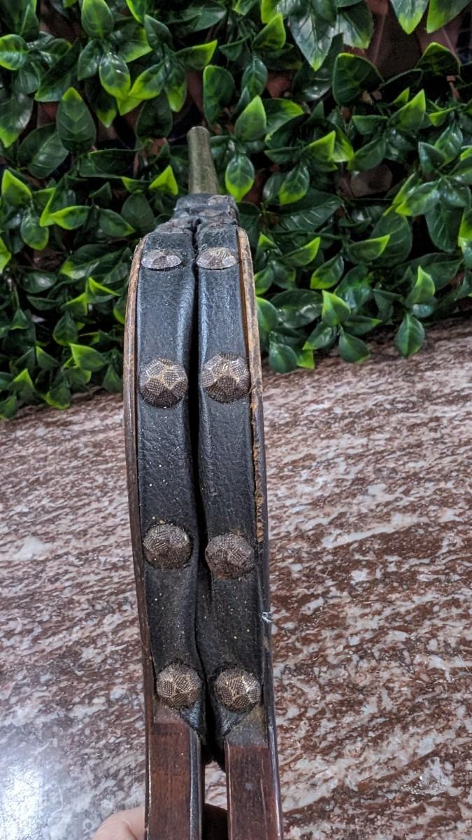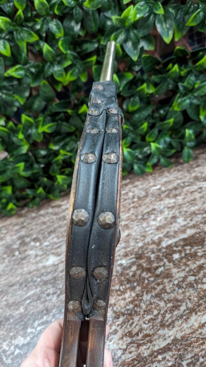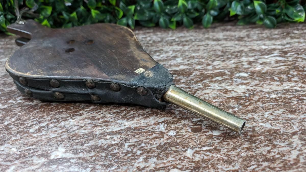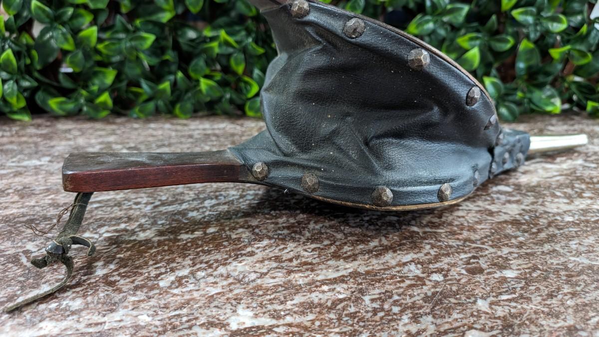 Vintage Fireplace Bellows Works Wood Leather Metal Coat of Arms