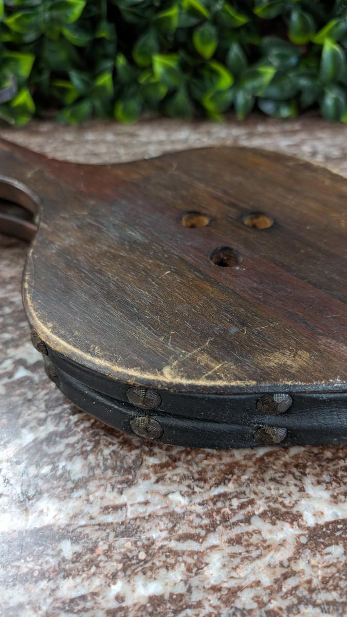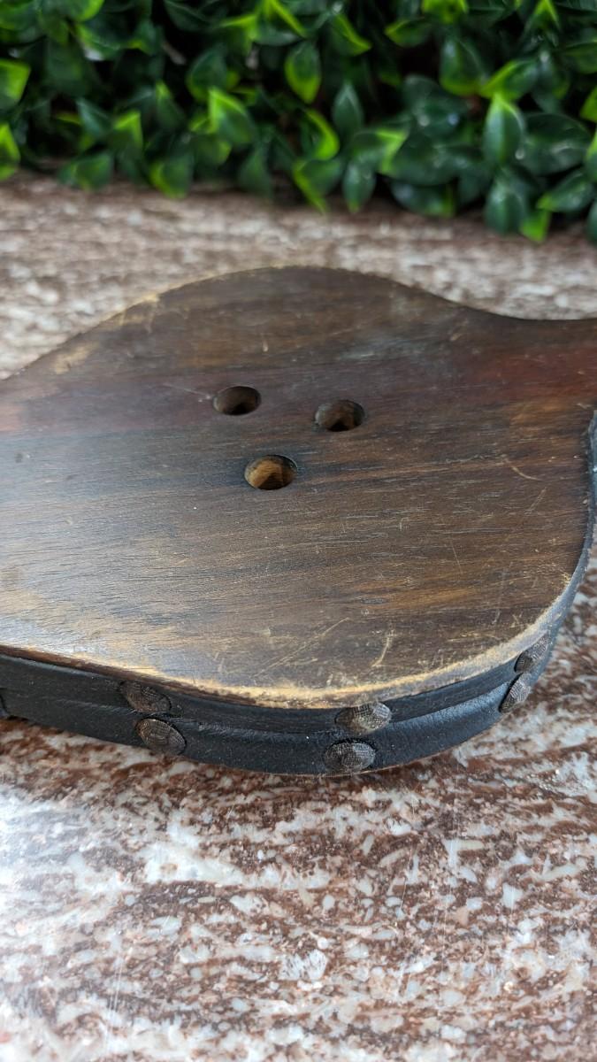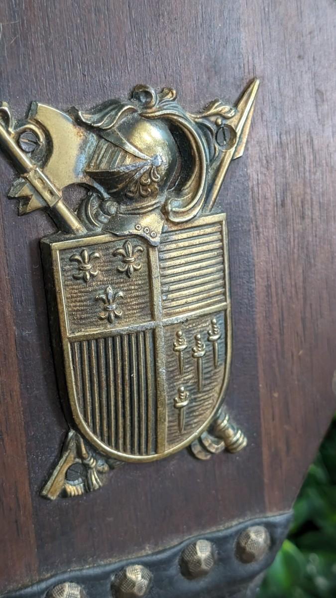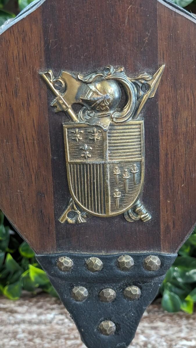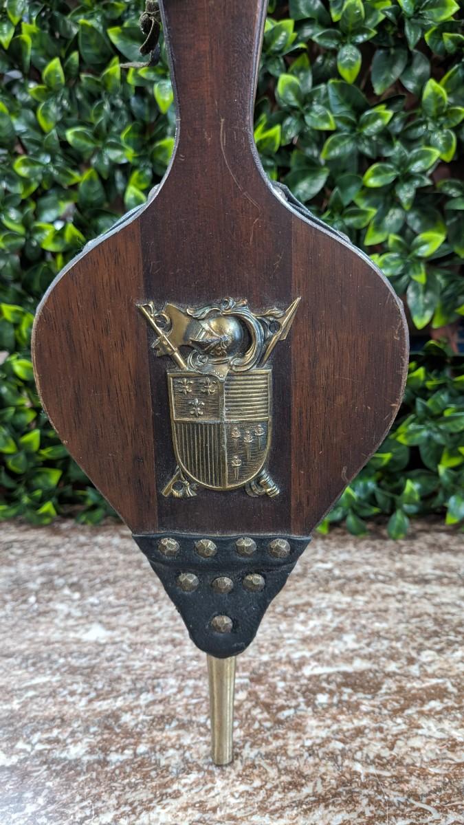 This is a Vintage Fireplace Bellows Wood Leather Metal Coat of Arms.