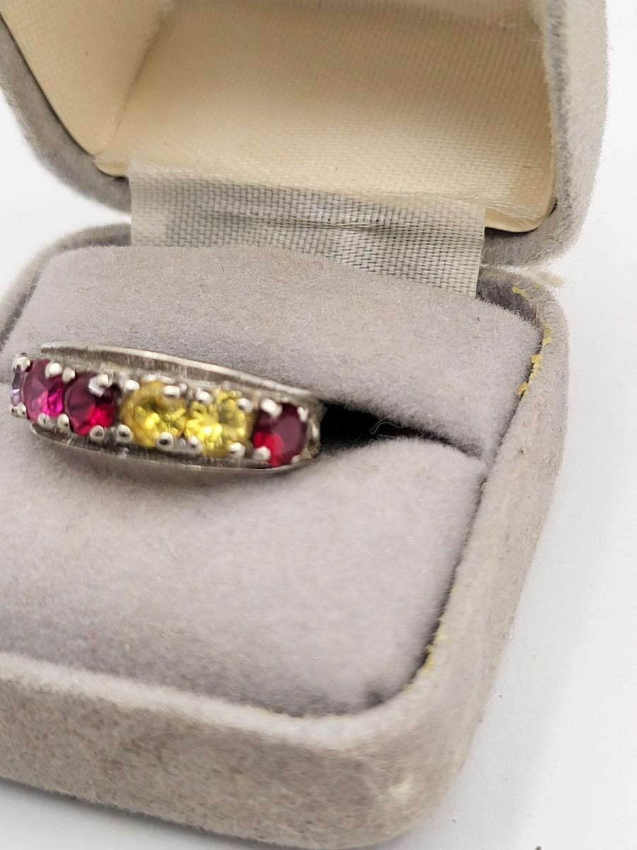 Vintage 10k White Gold & Colored Sapphire Ring 2.6gr