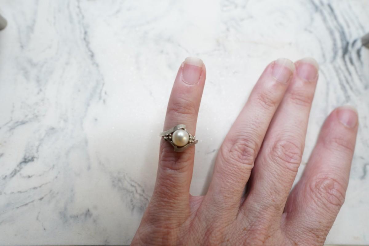 Vintage 10k White Gold Cultured Pearl Diamond Ring
