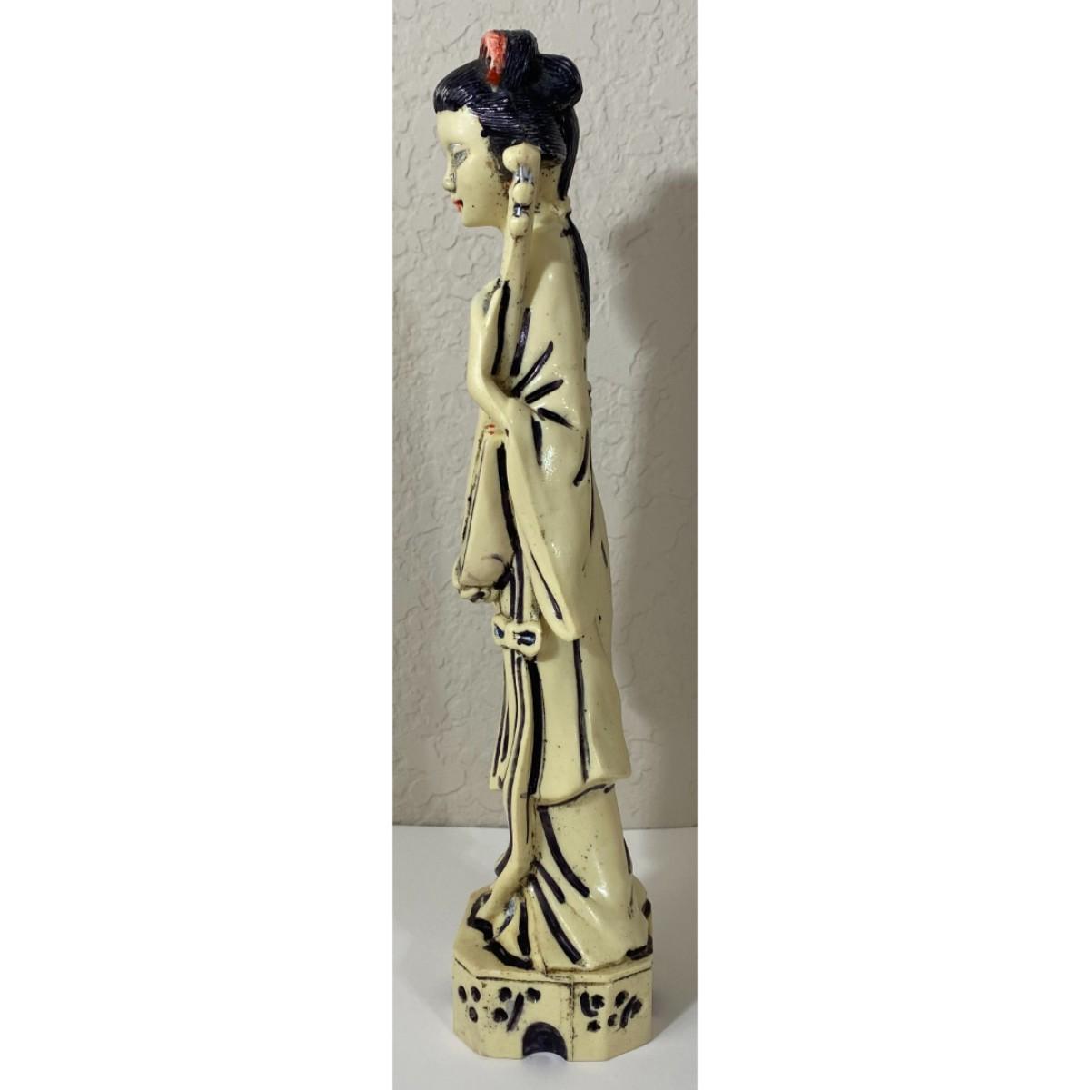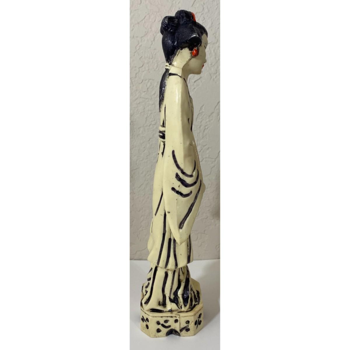 Vintage 11" Plastic Japanese Woman Lady Statue Instrument Music Black White