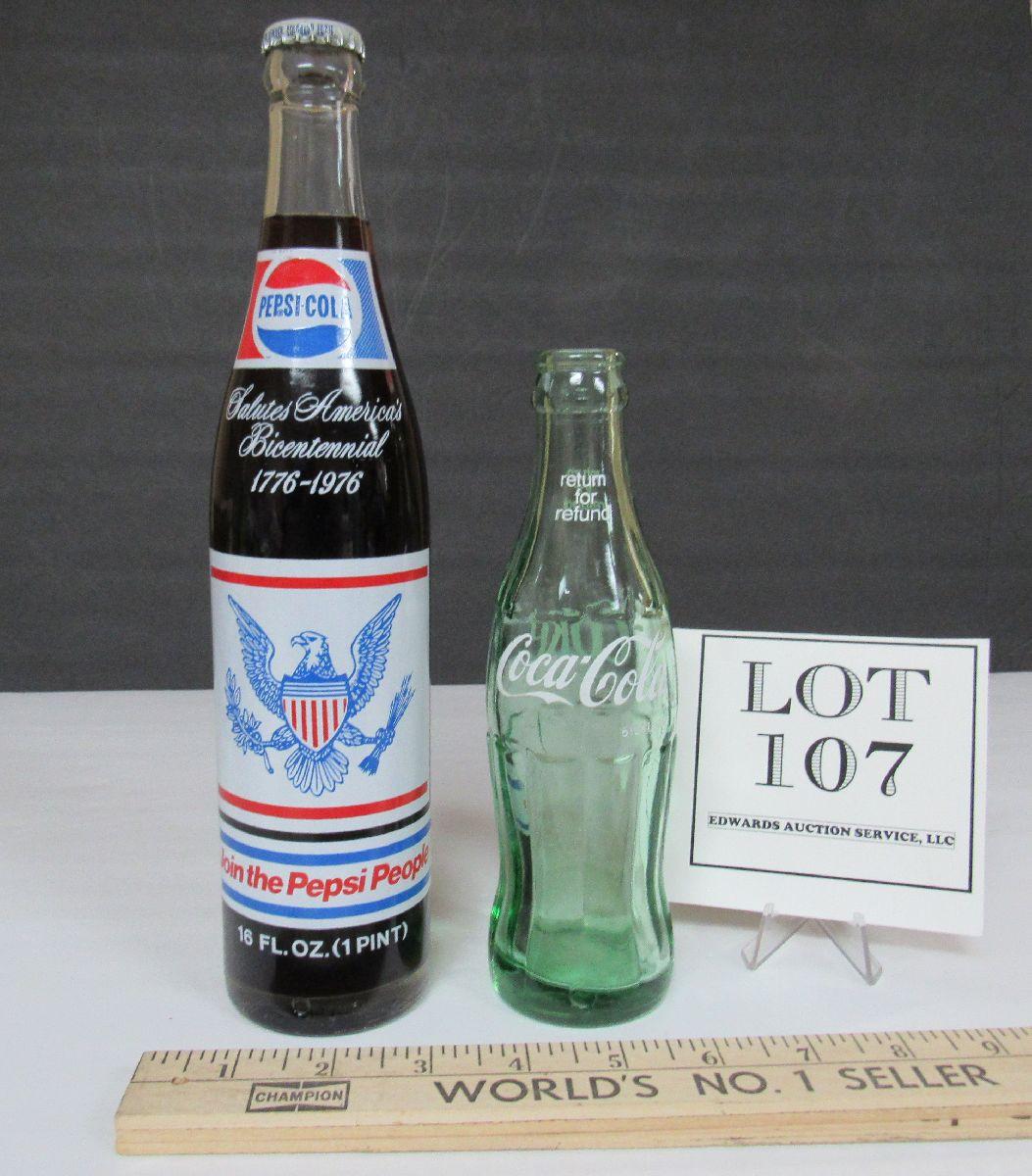 Vintage 11" Tall Pepsi Bicentennial and Colorado Centennial 16 Oz Bottle, Genaric Coca Cola Bottle