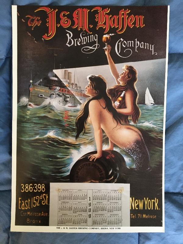 Vintage 11 x 15 Beer Poster HAFFEN BREWING Co. with Mermaid