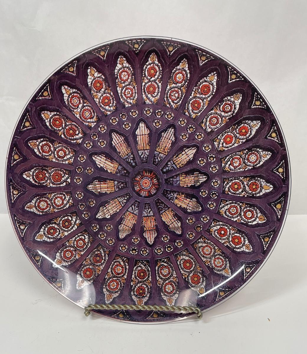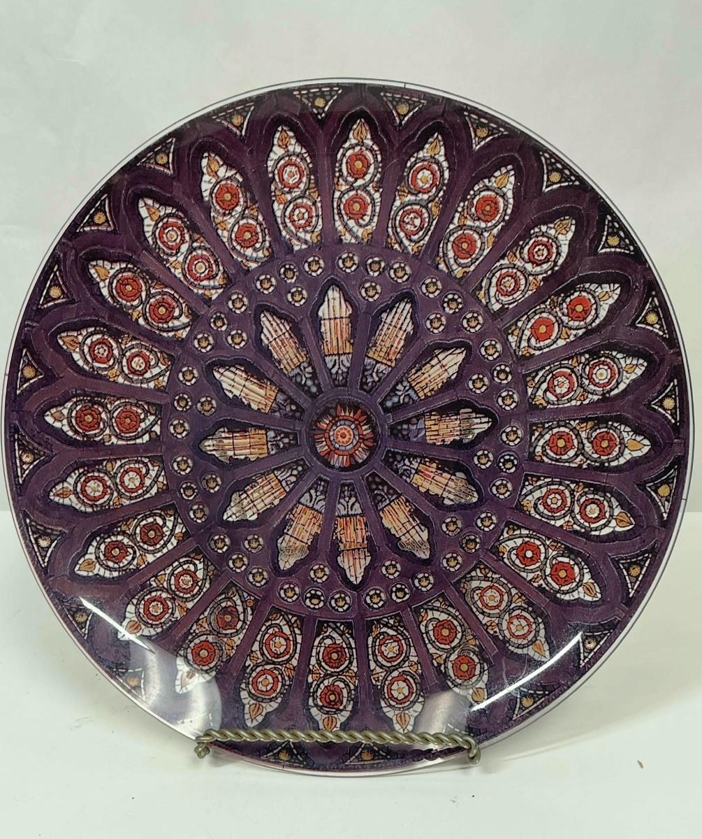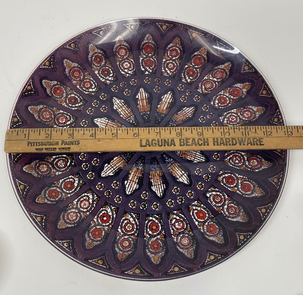 Vintage 13” Pilgrim Glass Silhouette Stained Glass Window Collector Plate Purple