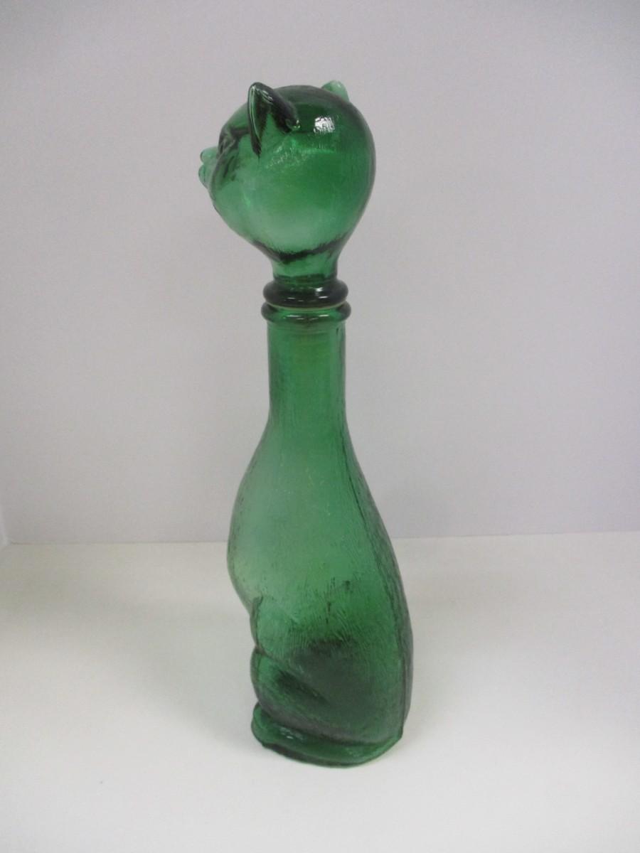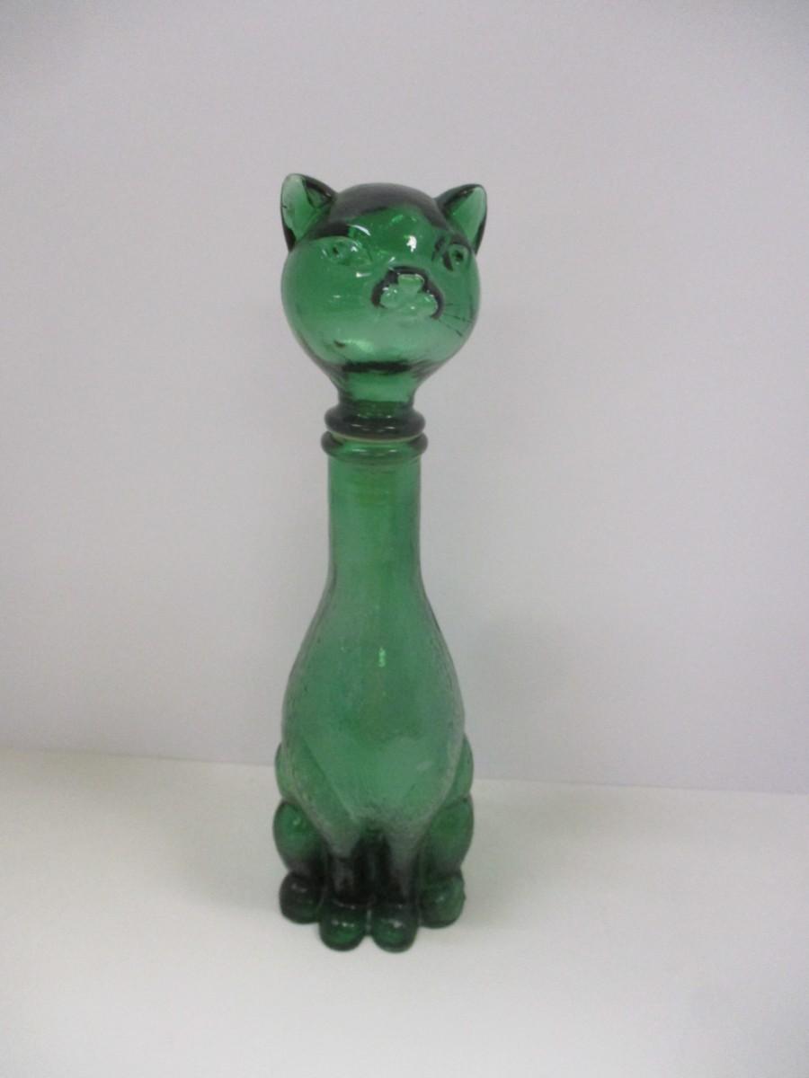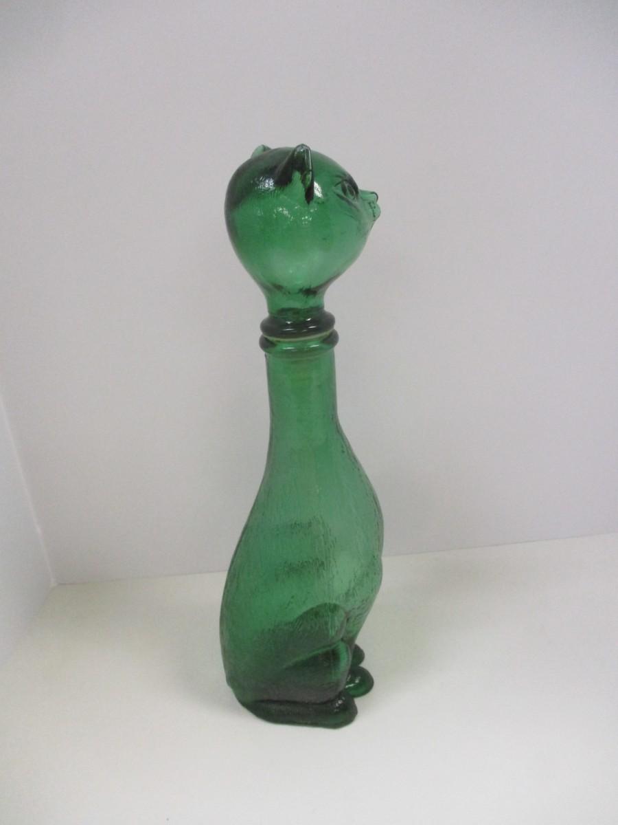 Vintage 14 1/2" MCM Green Glass Kitty Cat Empoli Italian Bottle Decanter 1960's