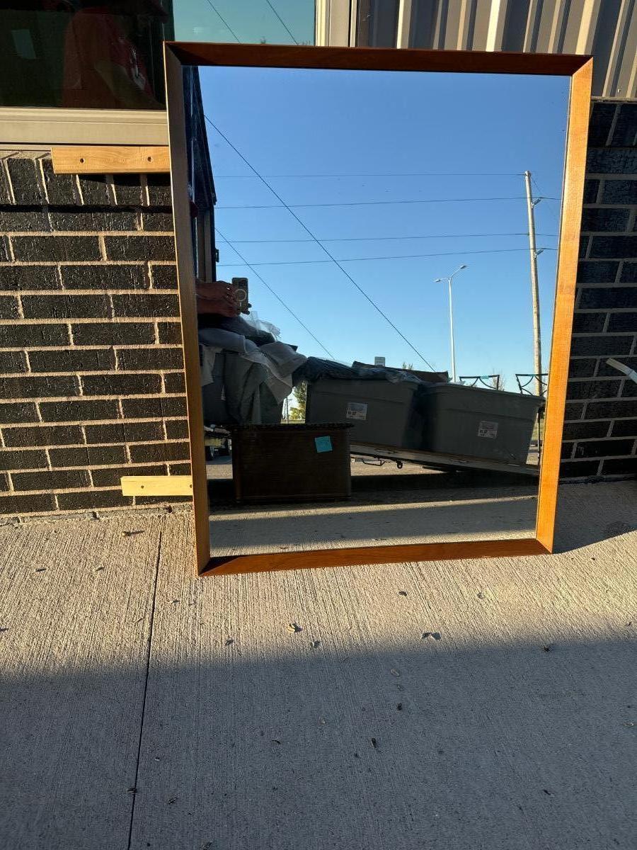 In great condition. Includes mirror. Dimensions are 58 inches long by 32 inches tall by 18 inches deep