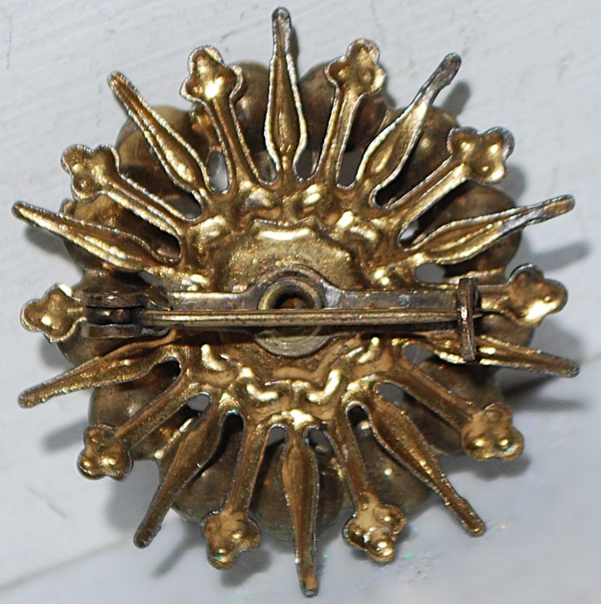 VINTAGE 14 Stones STARBURST BROOCH (1⅛" Diam.) on a Brass Style Setting