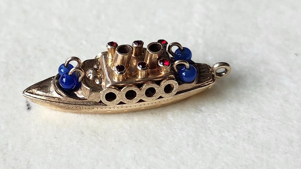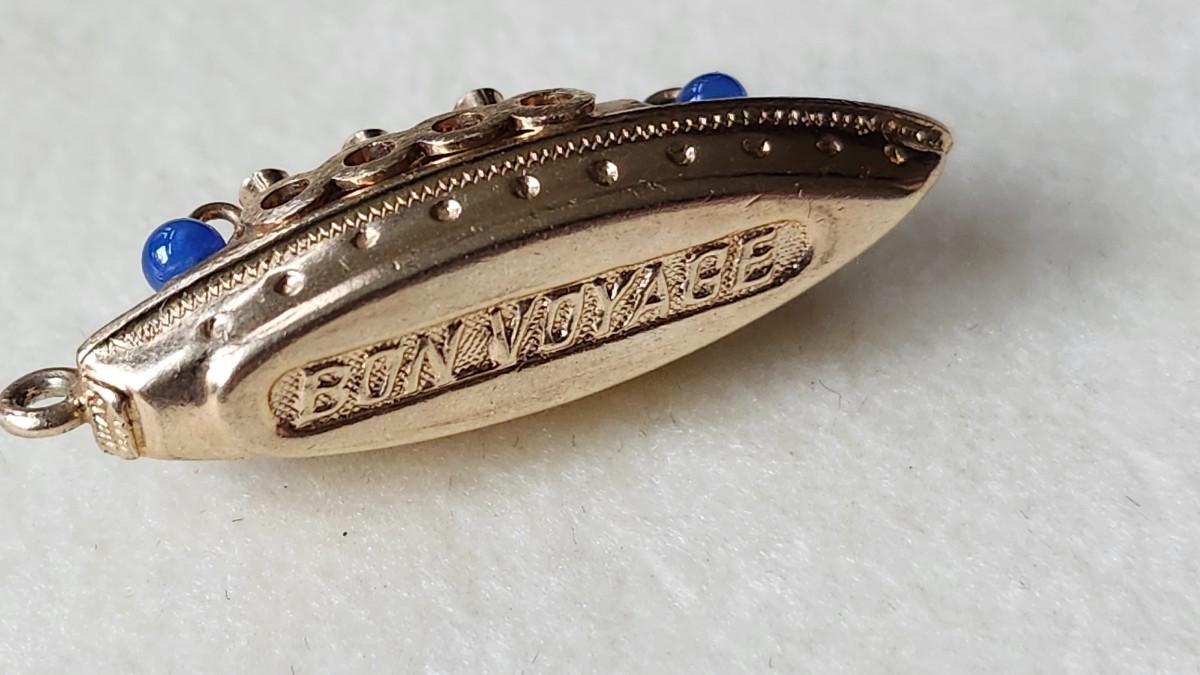 Vintage 14K Gold Bon Voyage Cruise Ship Pendant