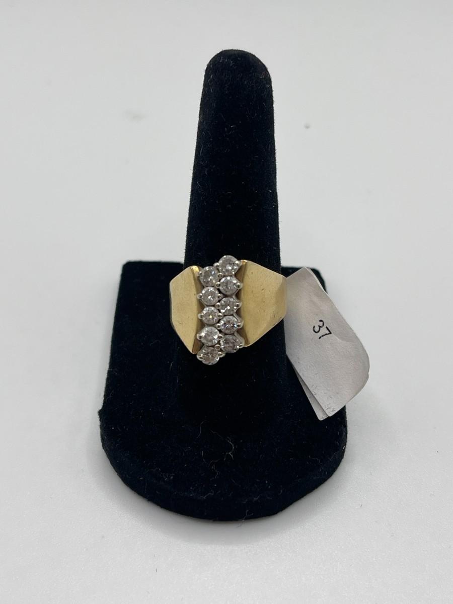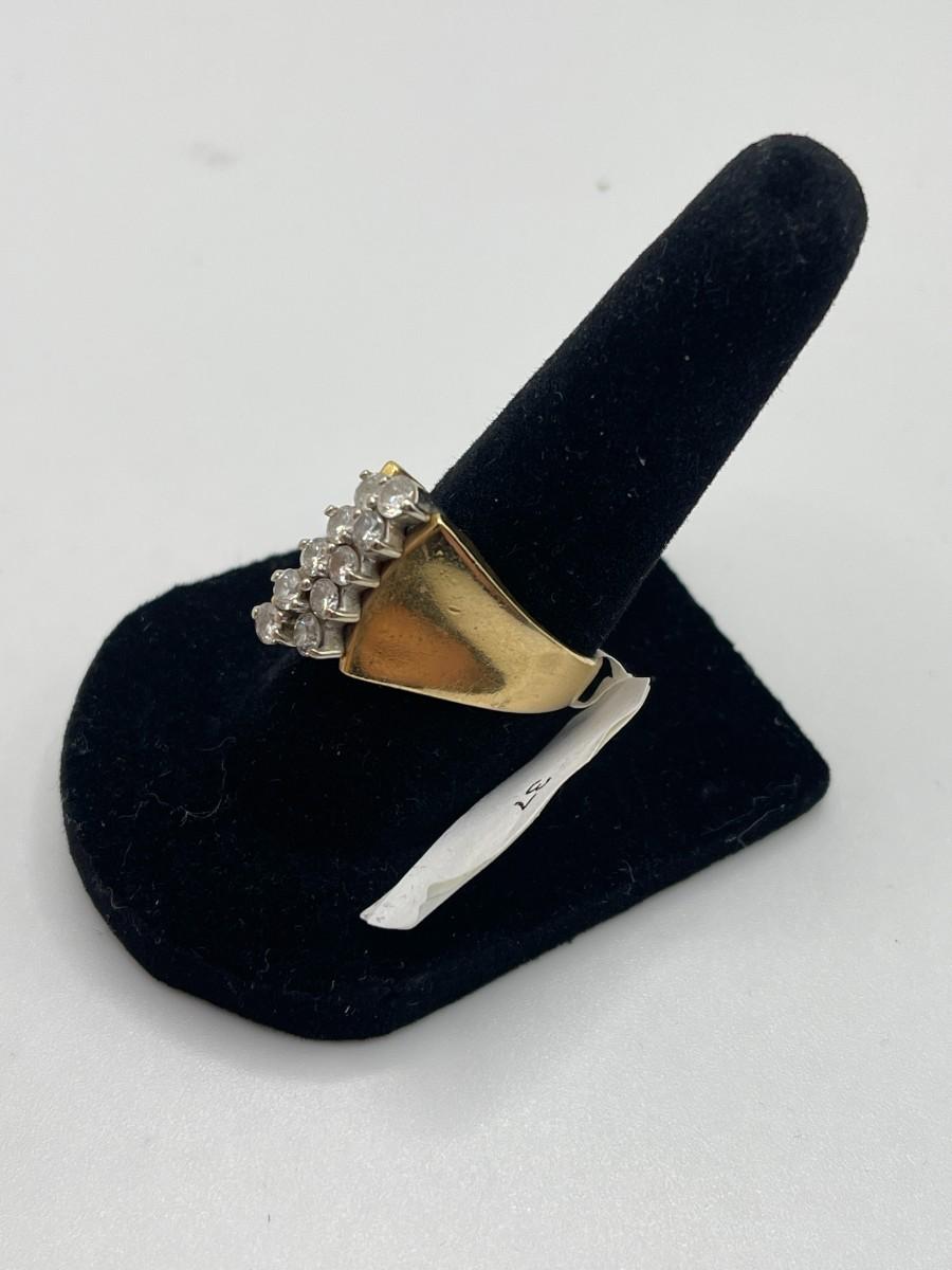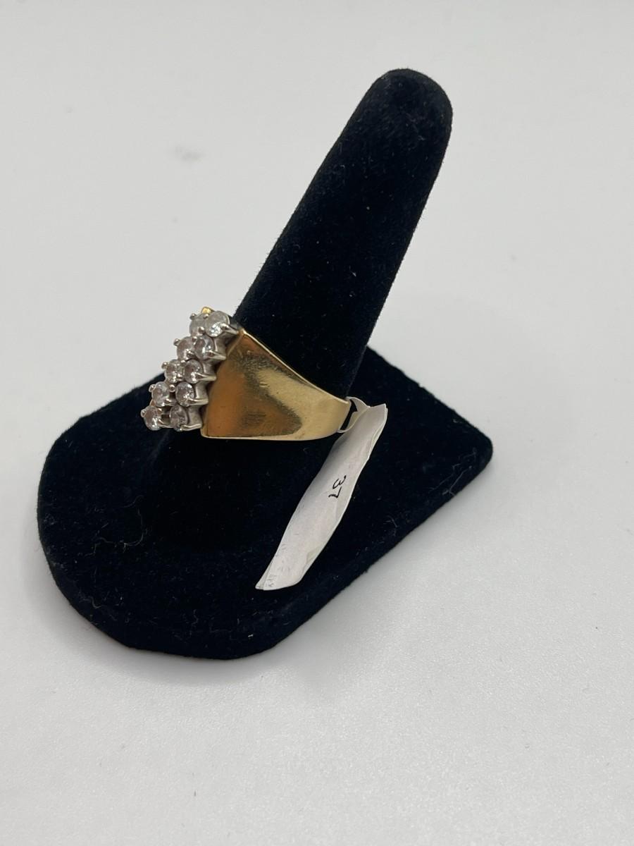Vintage 14K yellow gold ring with 7 white diamonds. Unknown maker, very good condition. .50cttw. 6.35 grams. Size 7. Fair condition, may need some work.