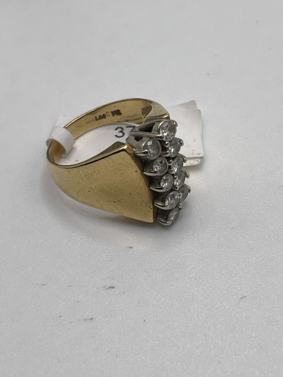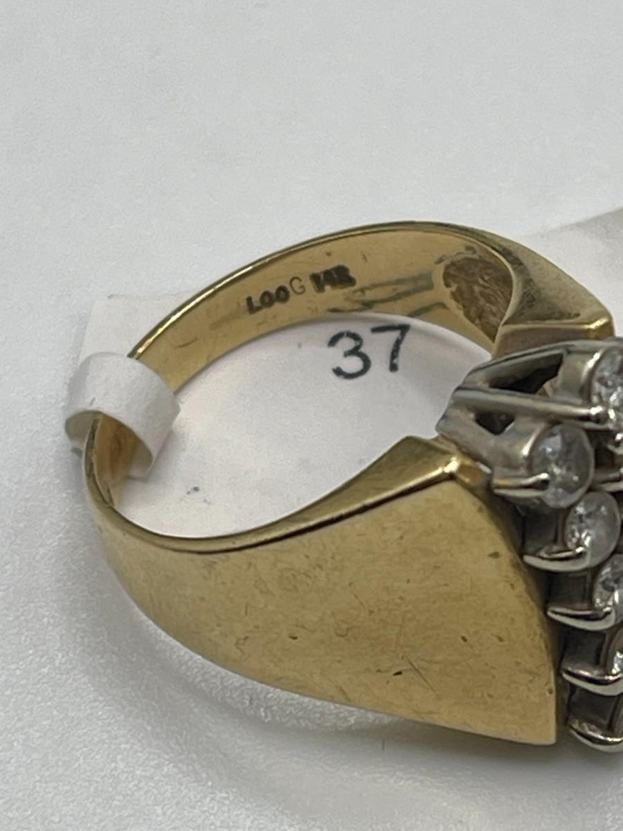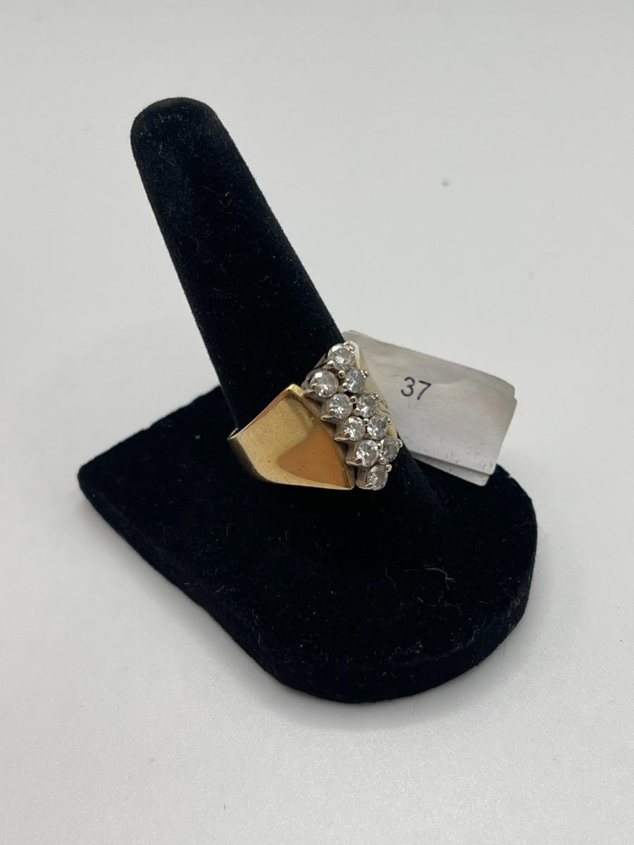 Vintage 14K yellow gold ring with 7 white diamonds. Unknown maker, very good condition. .50cttw. 6.35 grams. Size 7. Fair condition, may need some work.