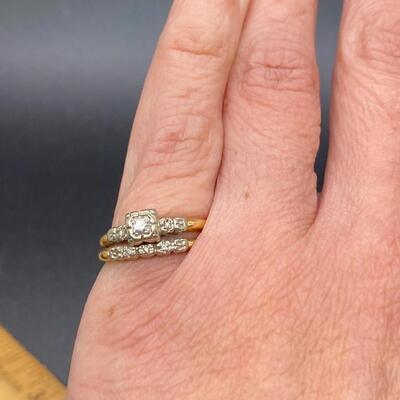 Vintage 14k Yellow Gold Engagement Ring & Wedding Band Set