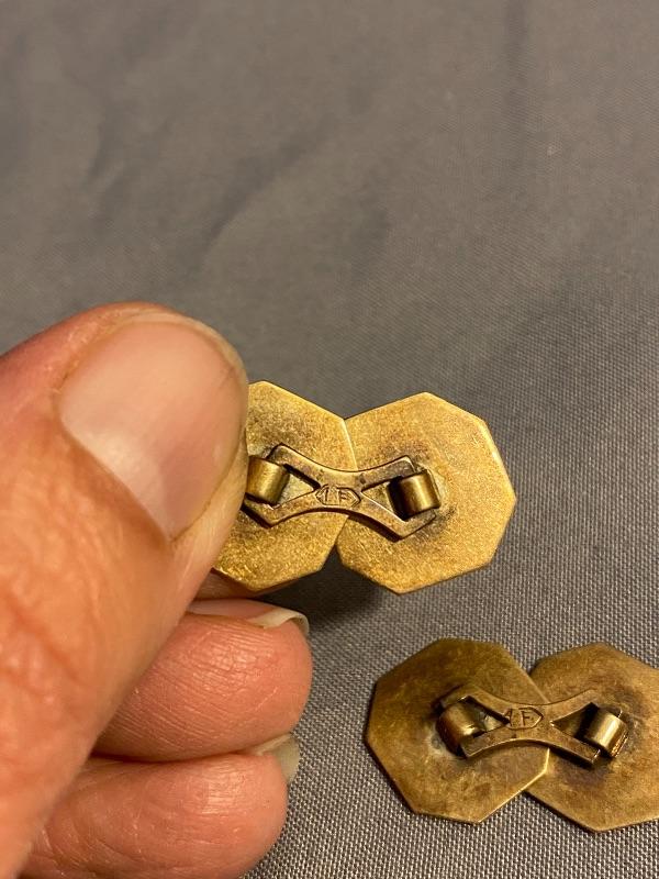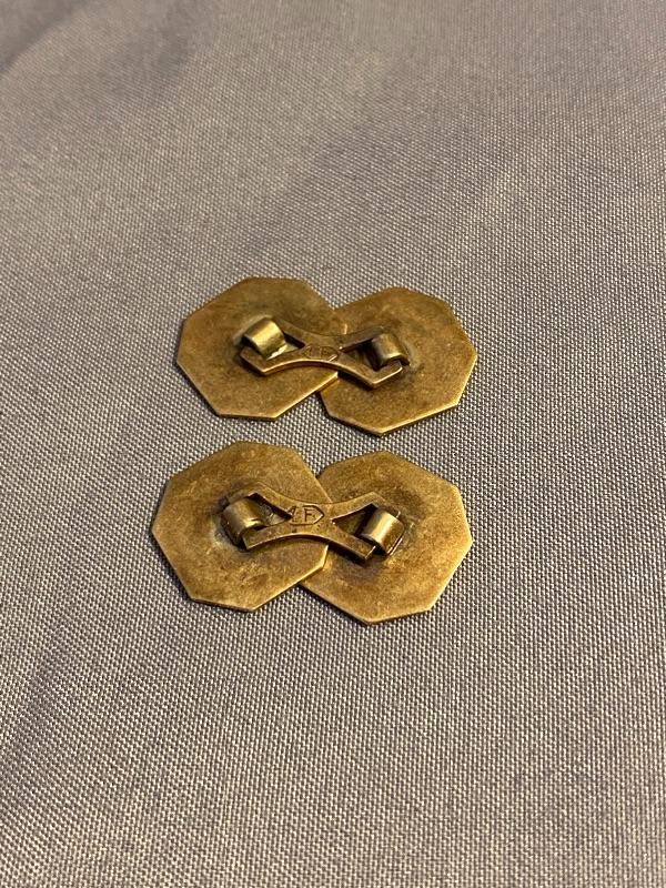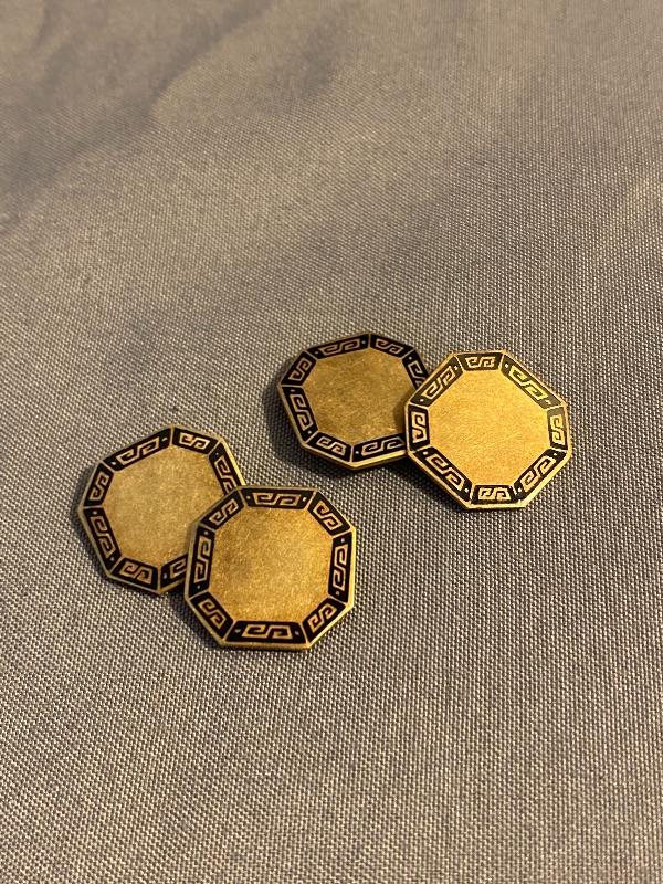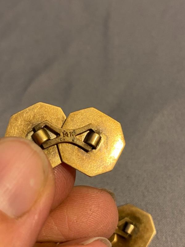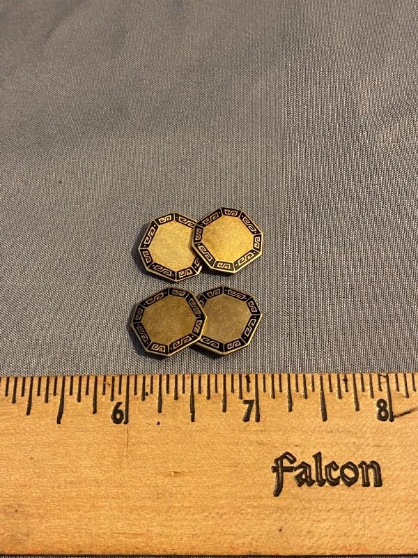 Vintage 14k yellow gold cuff links. Octagon shape with a greek key kind of pattern. Stamped 14k. Weigh 9.4g. There is enough center space they could be monogrammed.