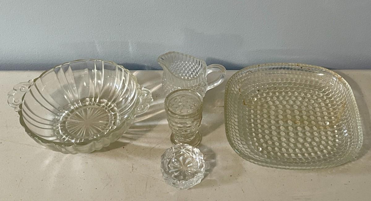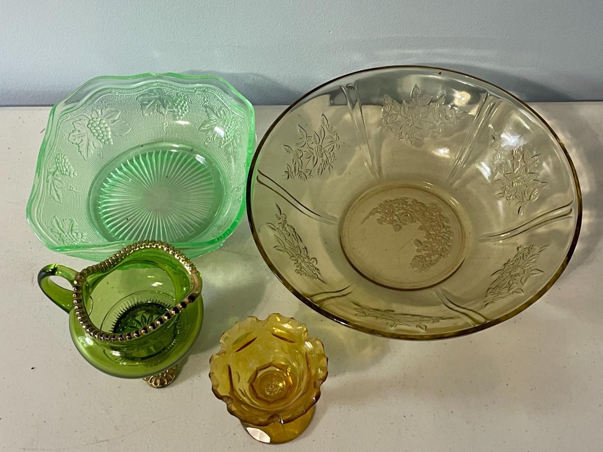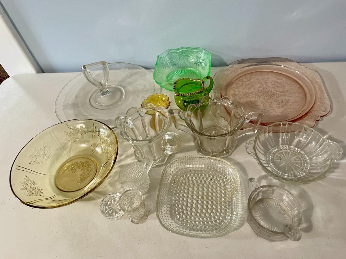 Includes clear, pink, amber and green pieces + a piece of green souvenir glass from the "Soldier's Home."