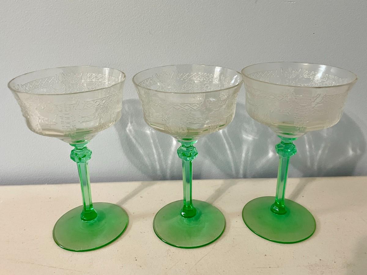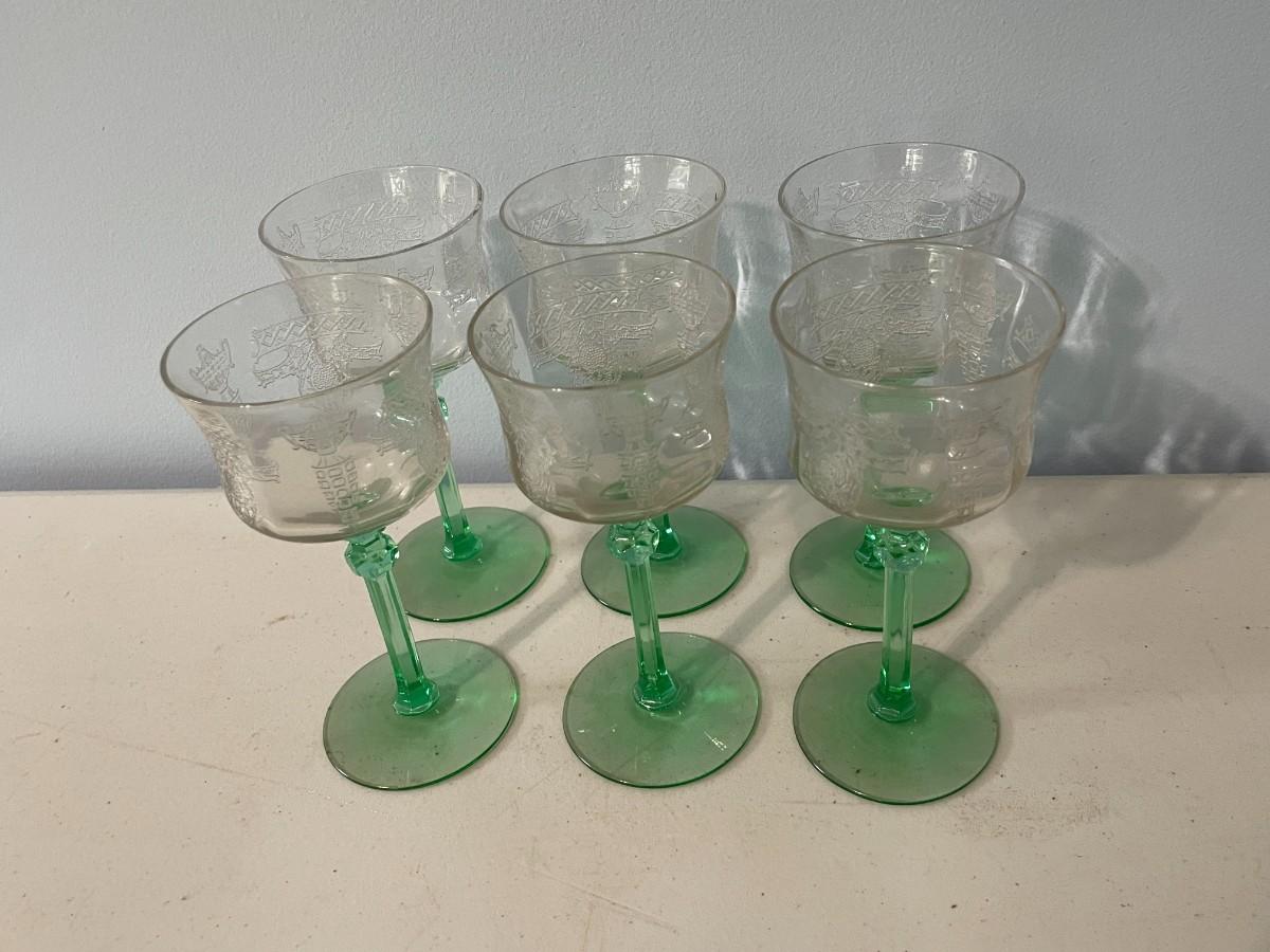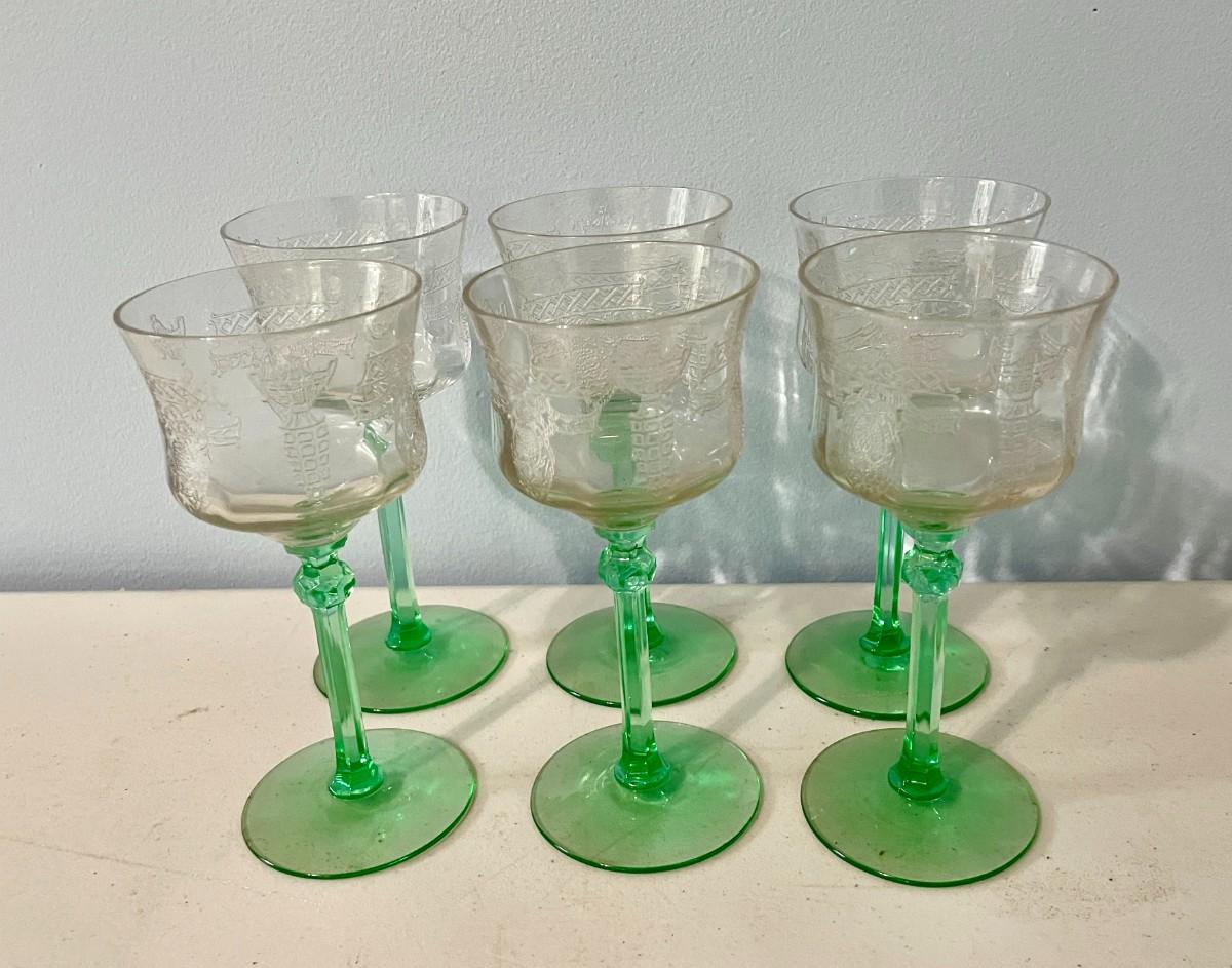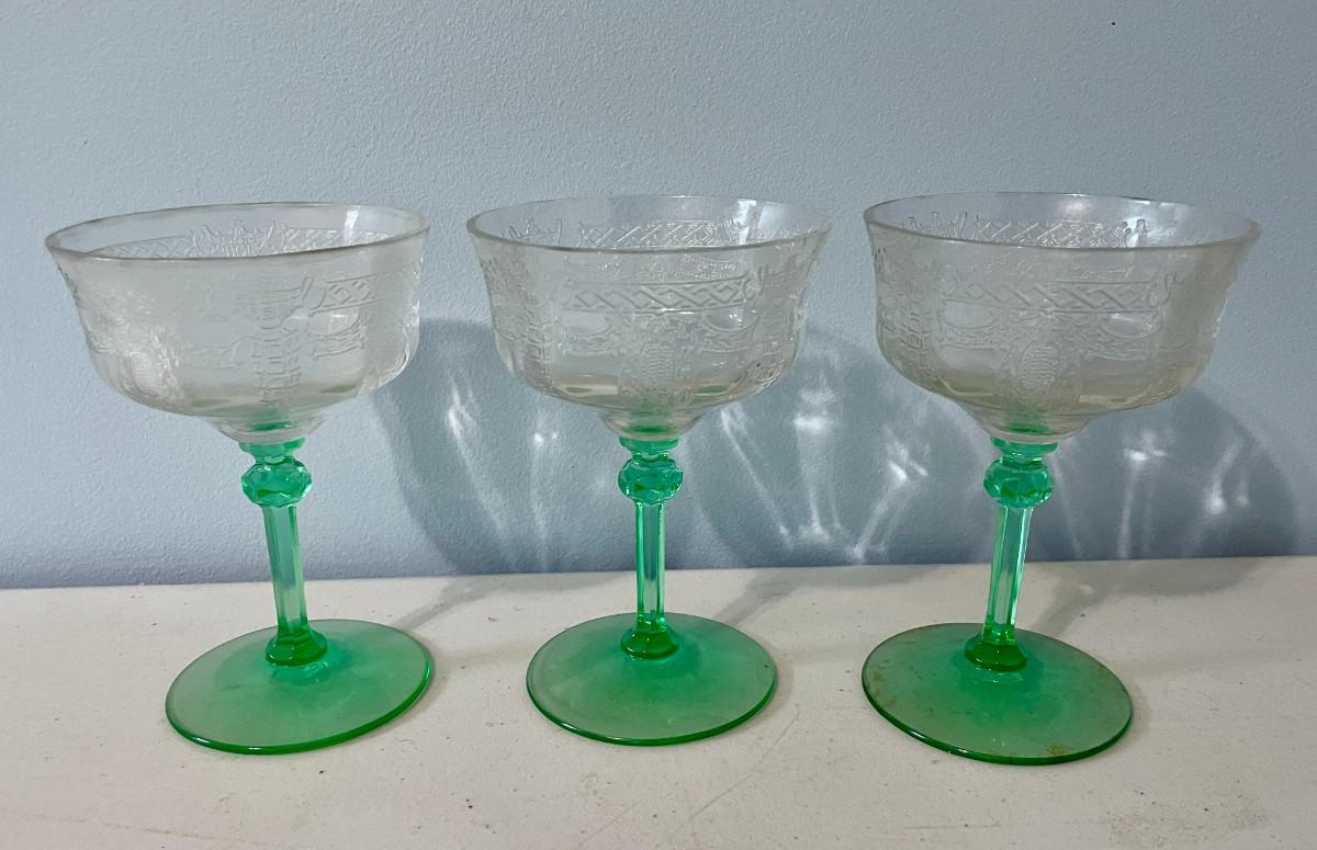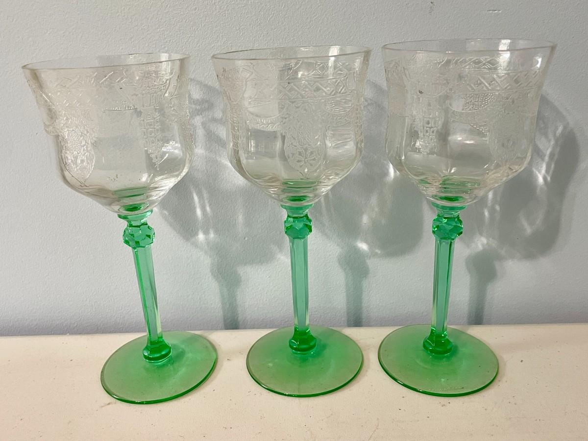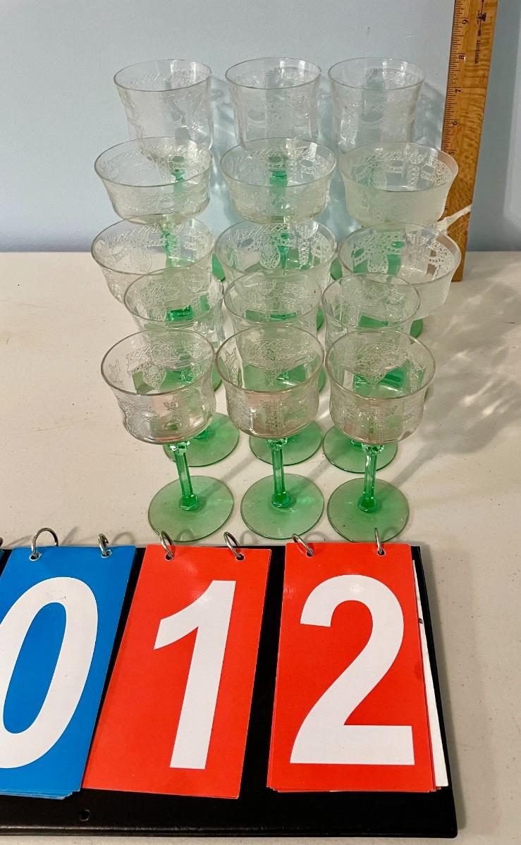 Vintage 15pc lot Depression etched glass stemware