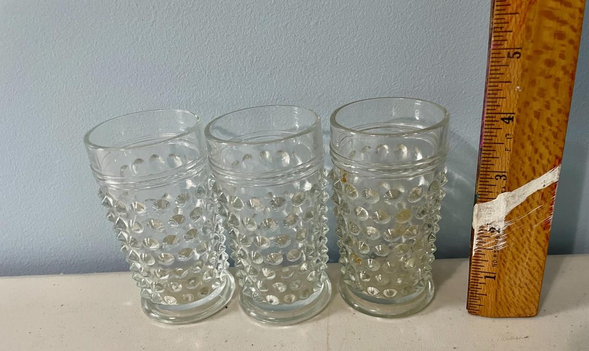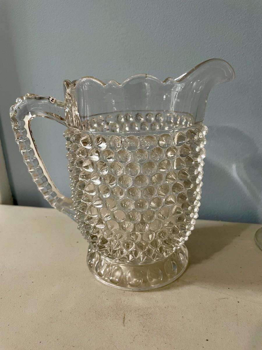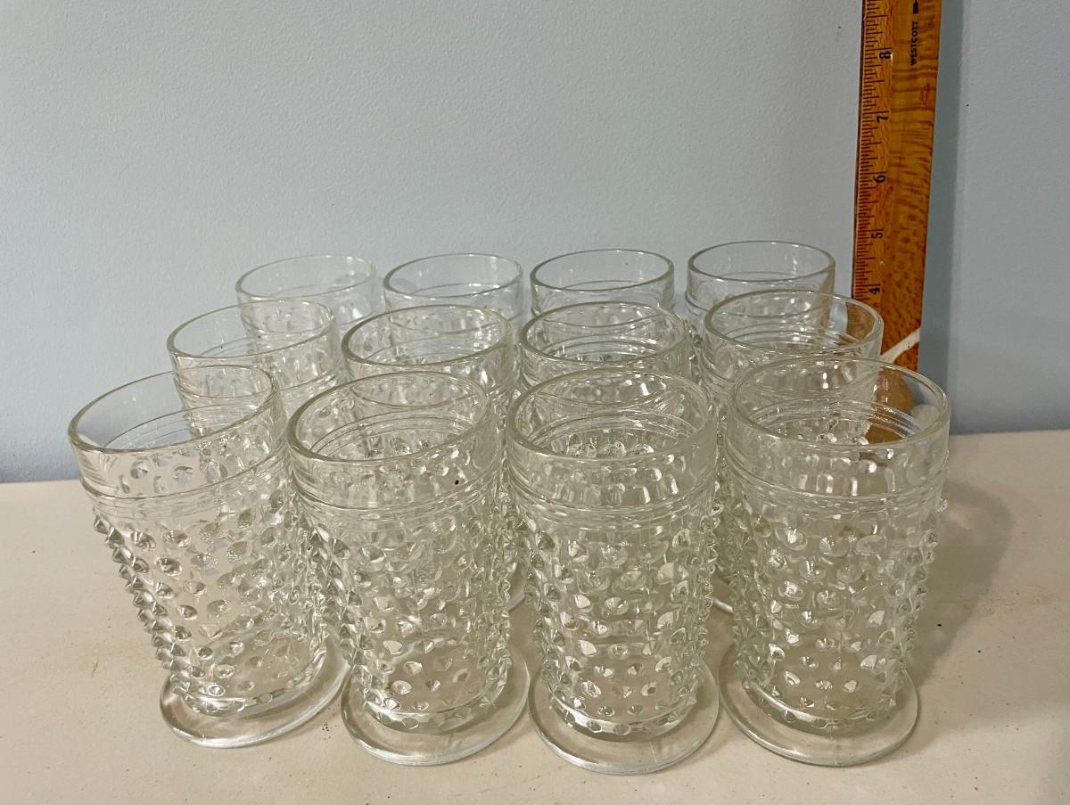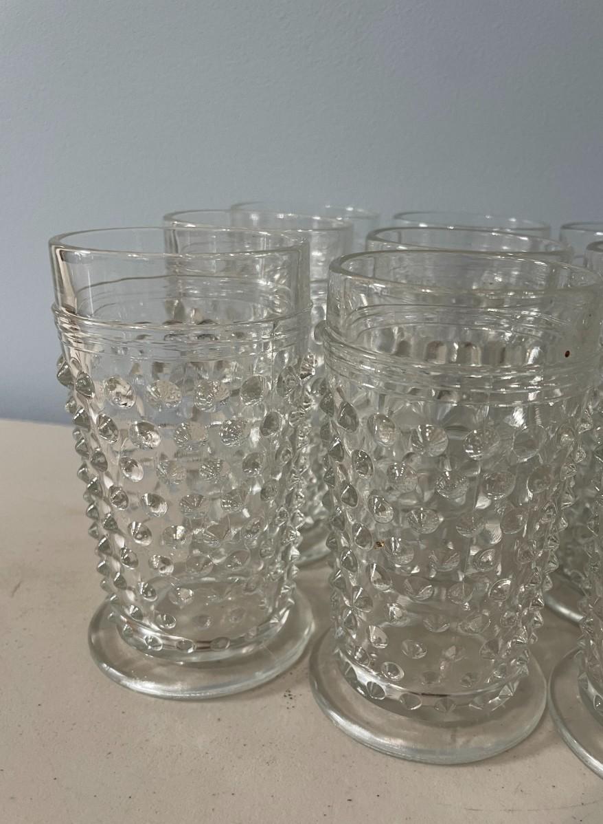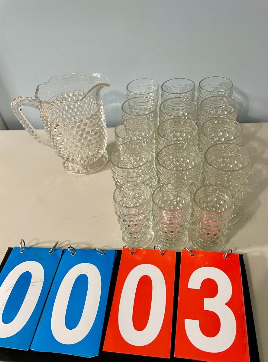 Vintage 16pc lot clear hobnail glasses + pitcher