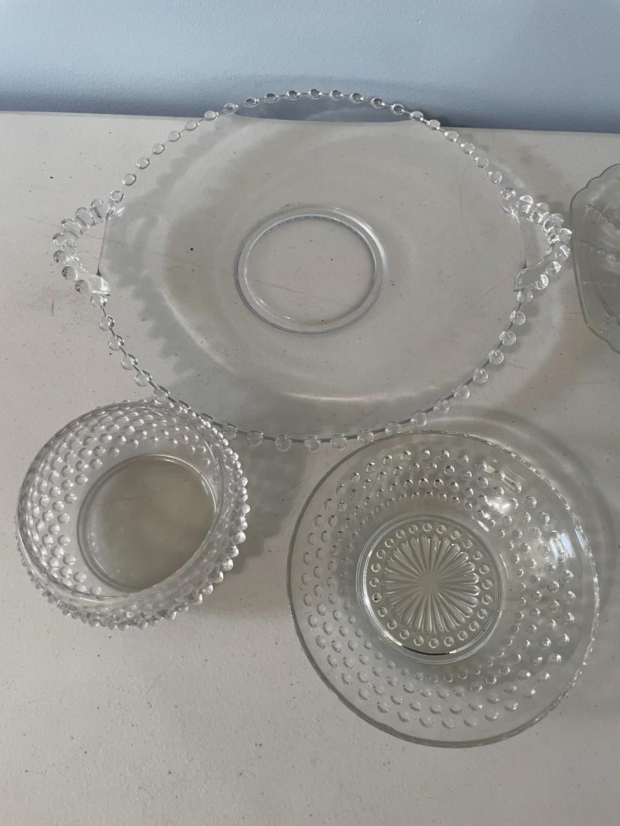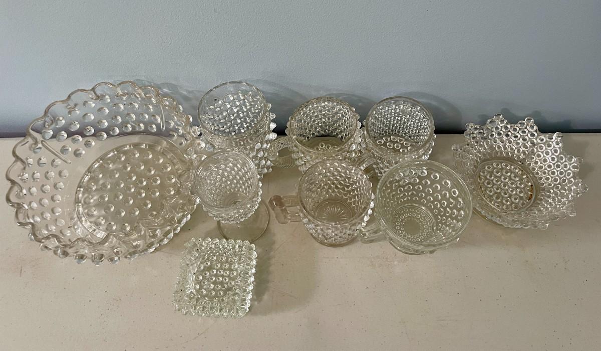 Vintage 17pc lot mixed clear hobnail glass dishes