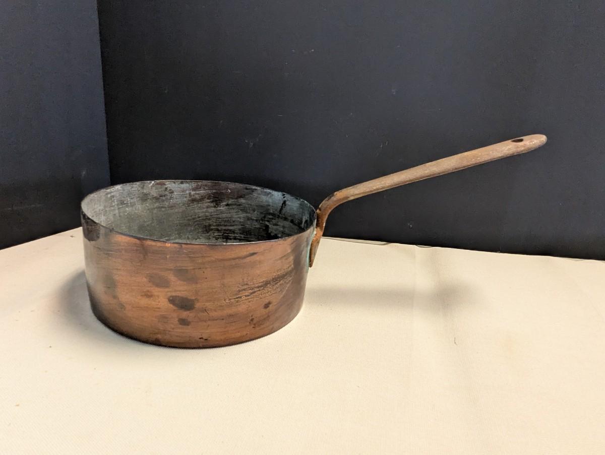 Vintage 1800's Hand-wrought Copper Pan With Riveted Handle