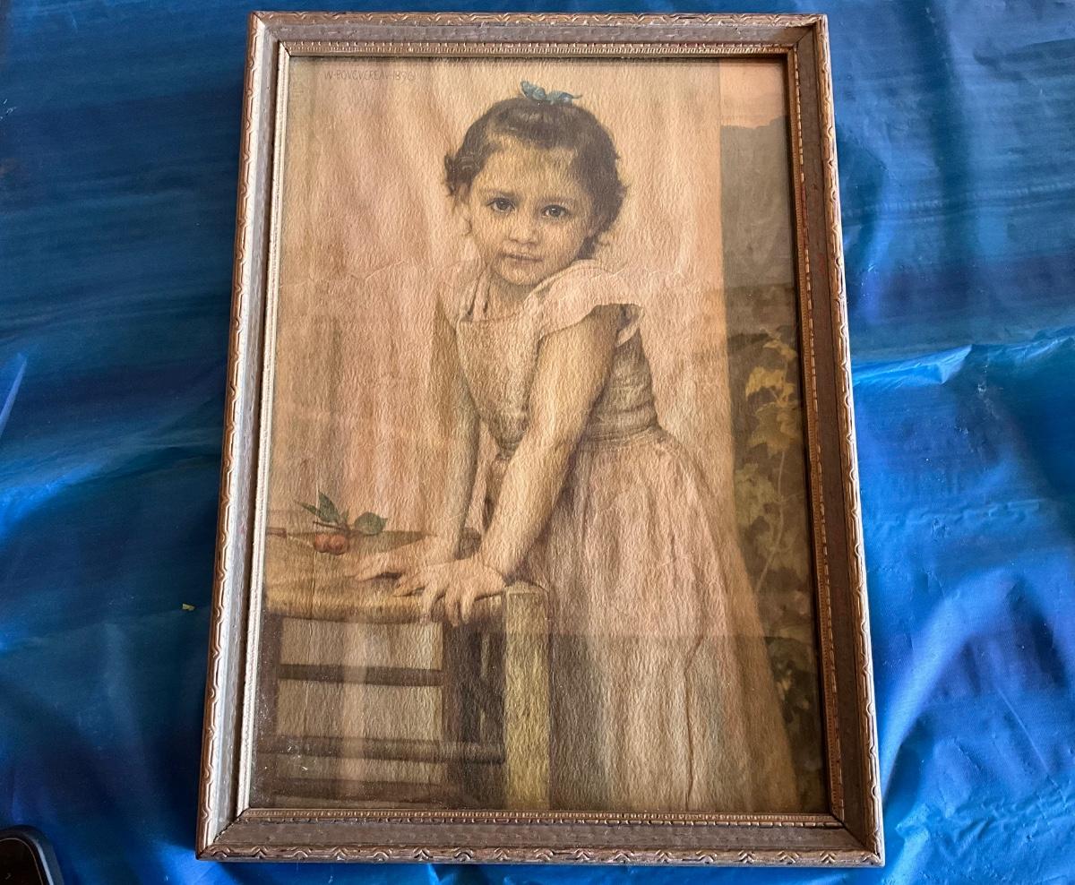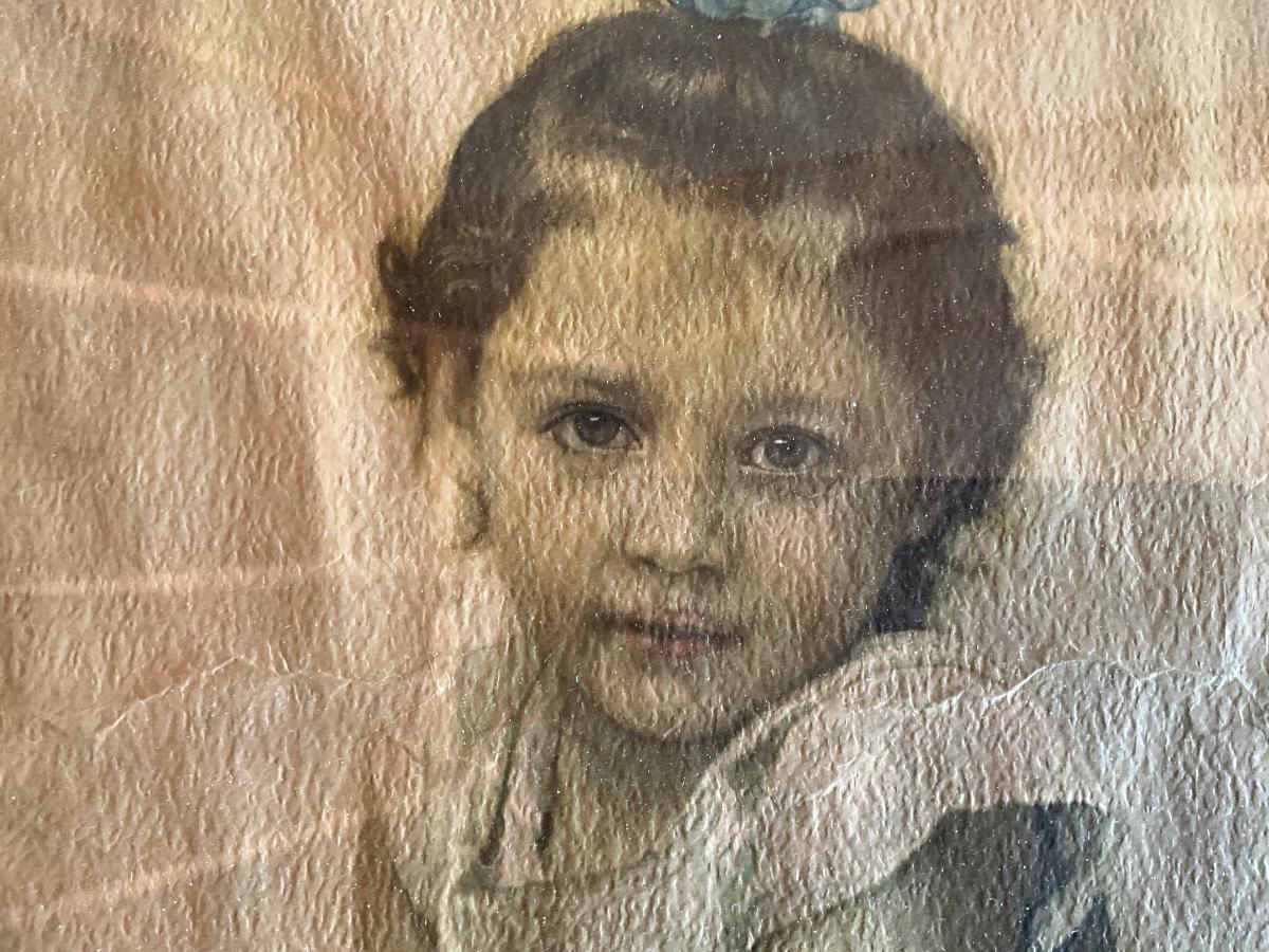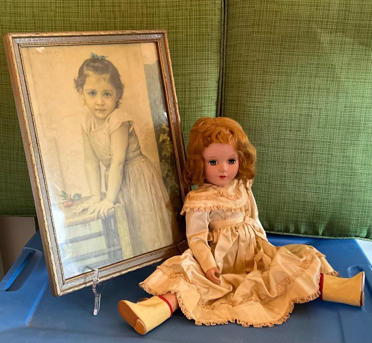 Vintage 1889 replica Child w/cherries and porcelain doll