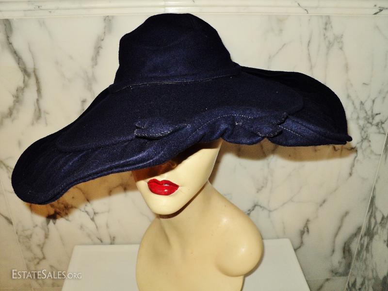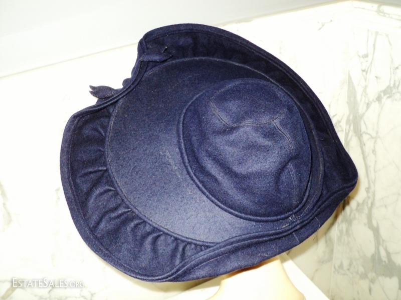 Amazing and very collectible late 1920-early 30's wool felt the inside is lined with voile and has grosgrain ribbon.Great details with felt large pins with cushions.. has a cloche kind of brim In very good vintage condition for its age almost 100 years old.