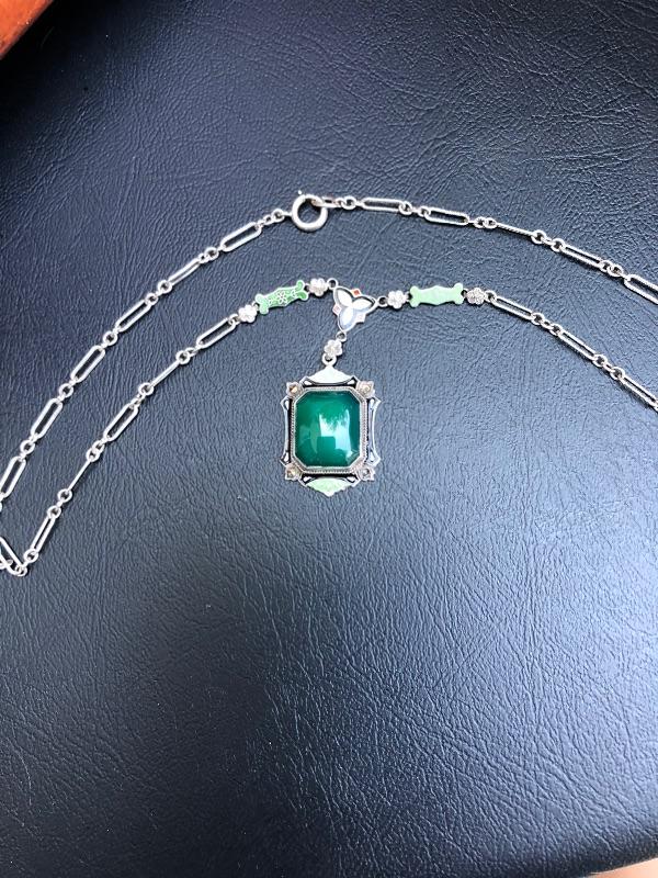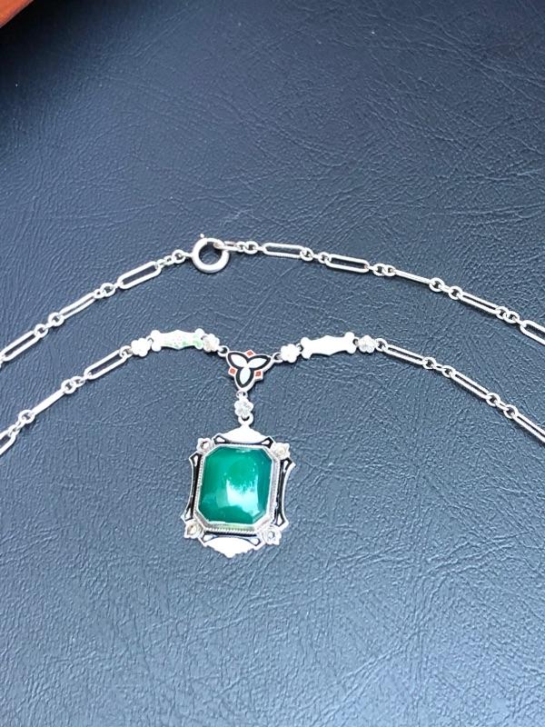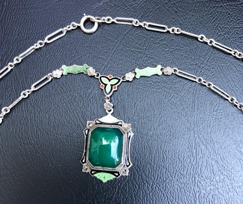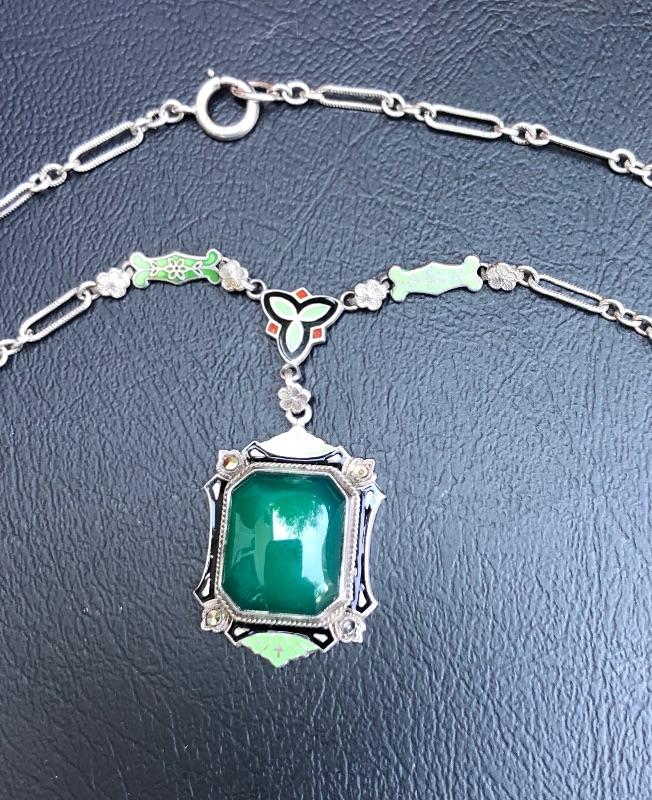 Vintage 1920’s Art Deco Enamel and Green Onyx Necklace
