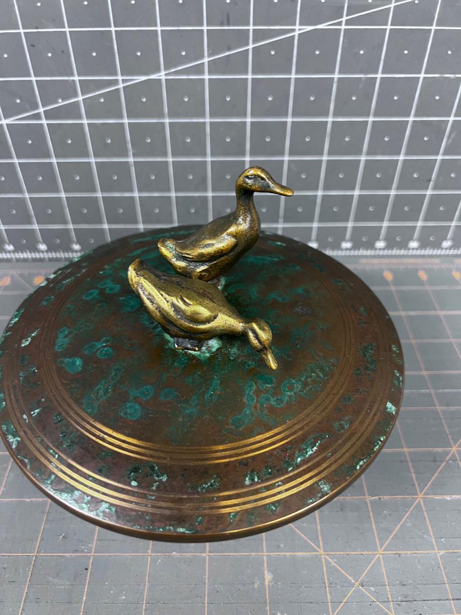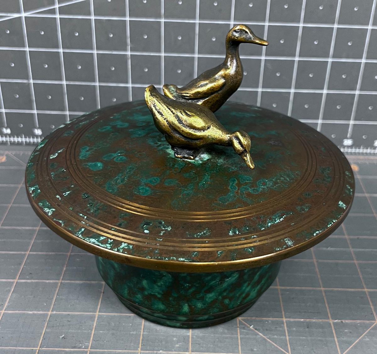 Vintage 1920's Carl Sorensen Bronze Verdigris Covered Dish Art Deco Ducks