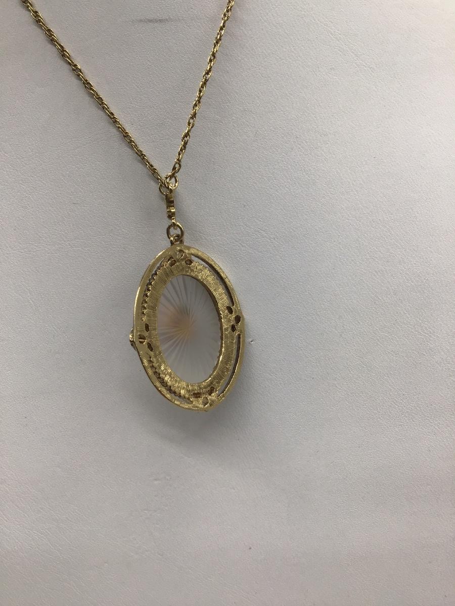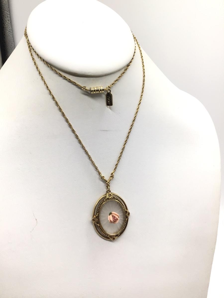 Vintage 1928 Glass and Porcelain Rose Pendant on Gold Tone chain