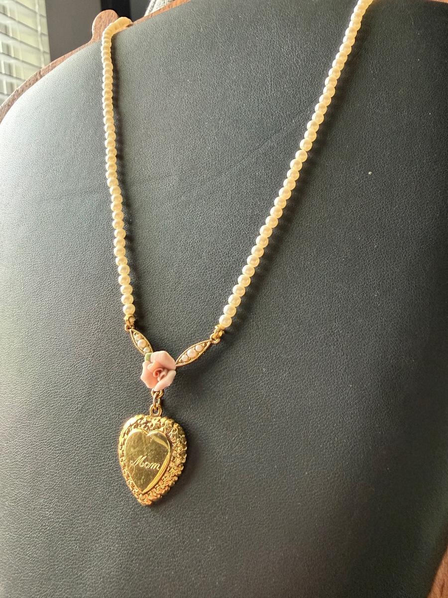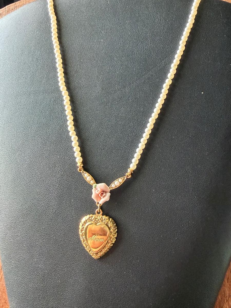 Vintage 1928 heart faux pearl necklace
