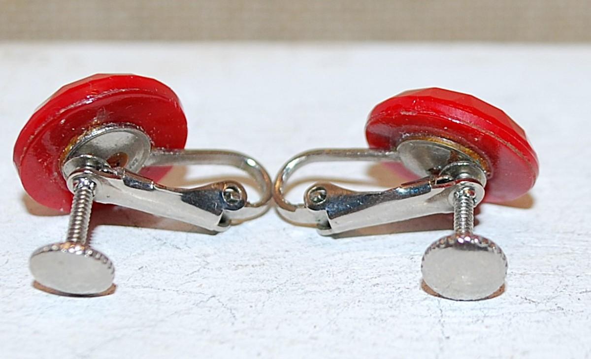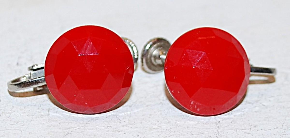 VINTAGE 1930's Bright RED Beveled Glass Earrings (½" Circ.) with a Screw-In Clasp