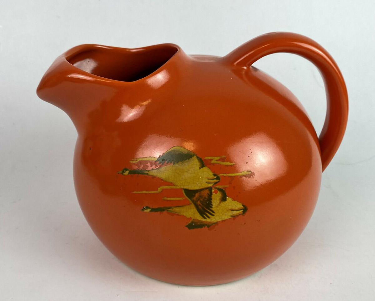 vintage 1930s POTTERY BALL JUG TILT PITCHER canadian geese transfer