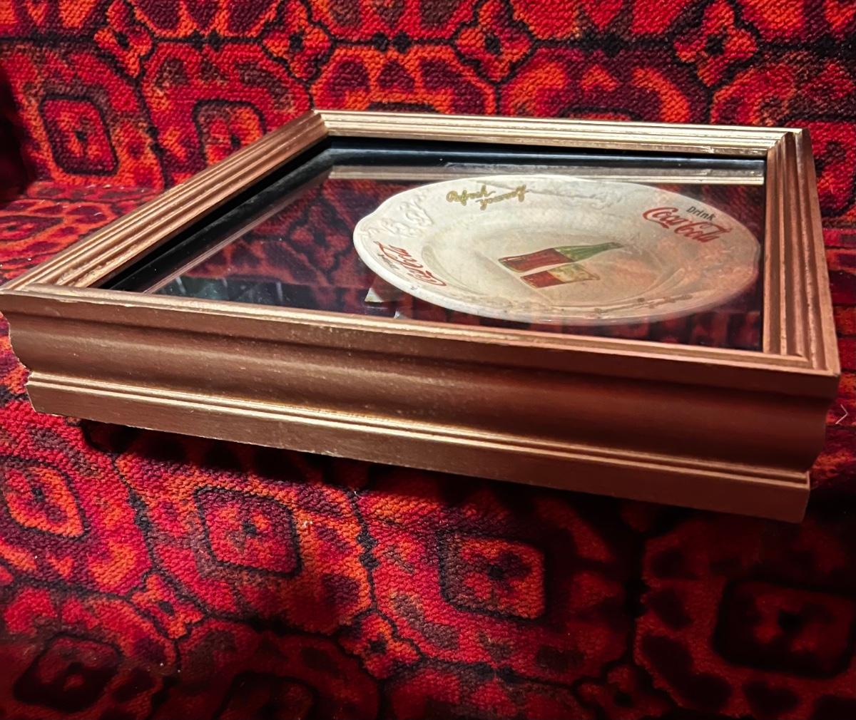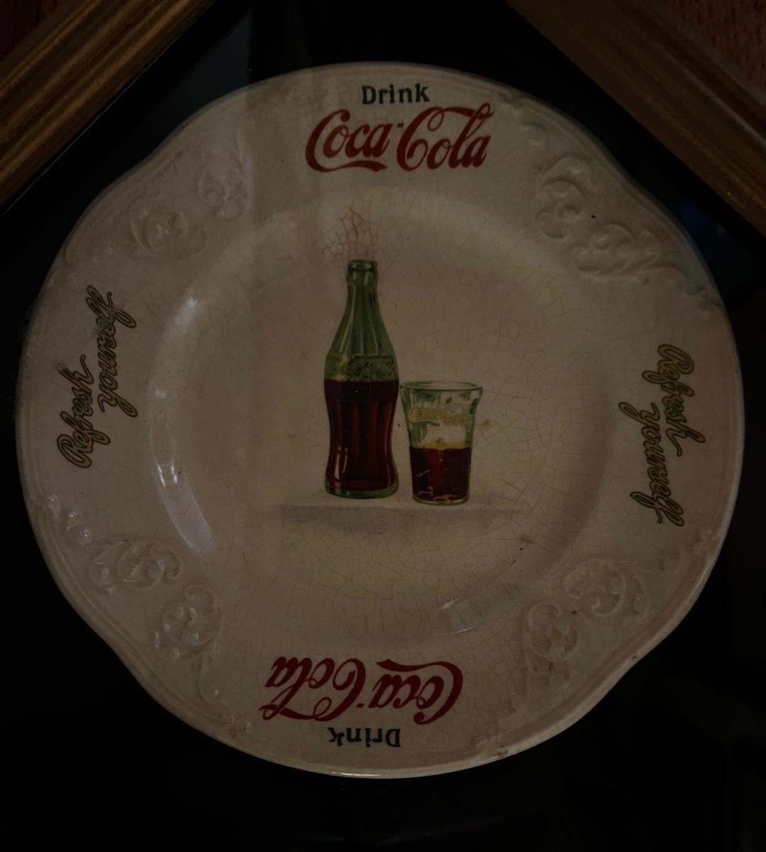 Vintage 1931 Edwin Knowles Drink Coca-Cola Lunch Plate Refresh Yourself. Plate has natural yellowing and crackling from age. The plate in inclosed in a wood case