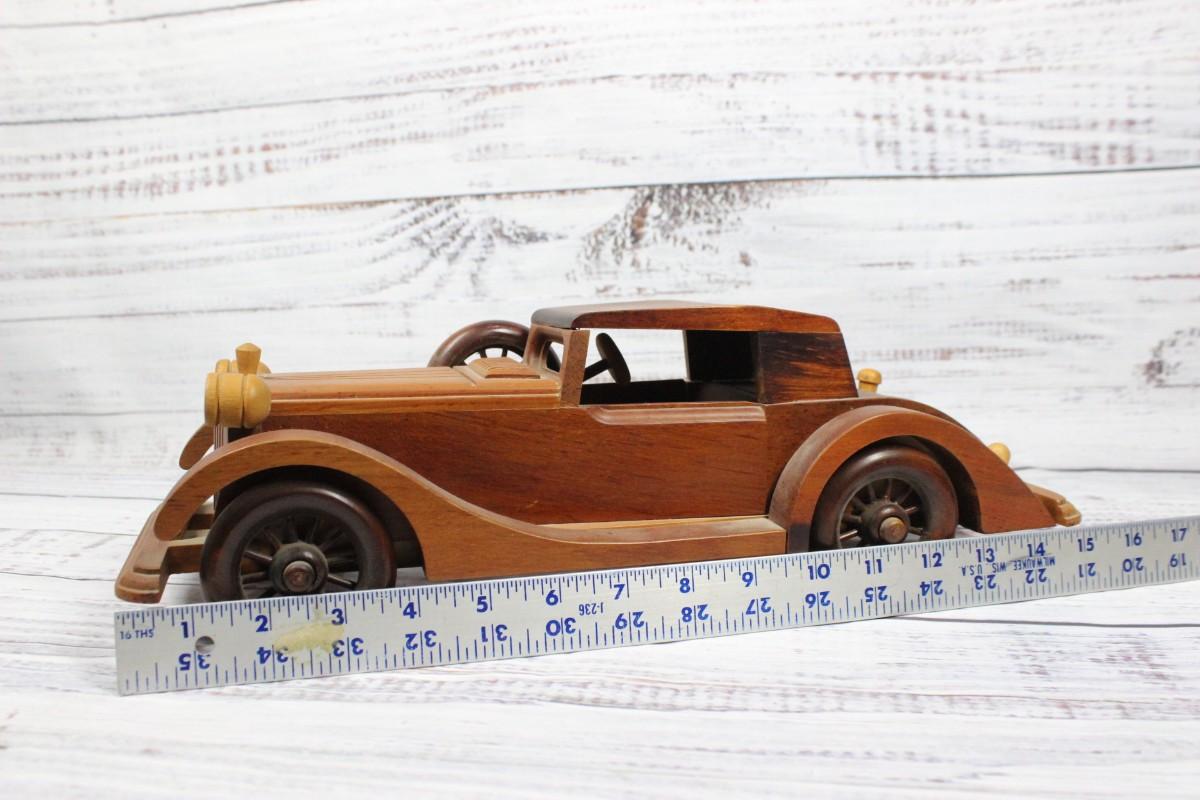 15" vintage wooden replica of a 1935 Auburn 851. There is no significant scratches or chips on the wood.
