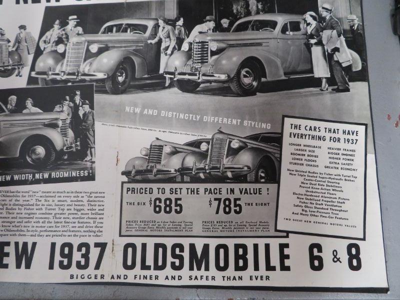 Vintage 1937 Oldsmobile Eight Magazine Advertising of New Car Company 21x13"