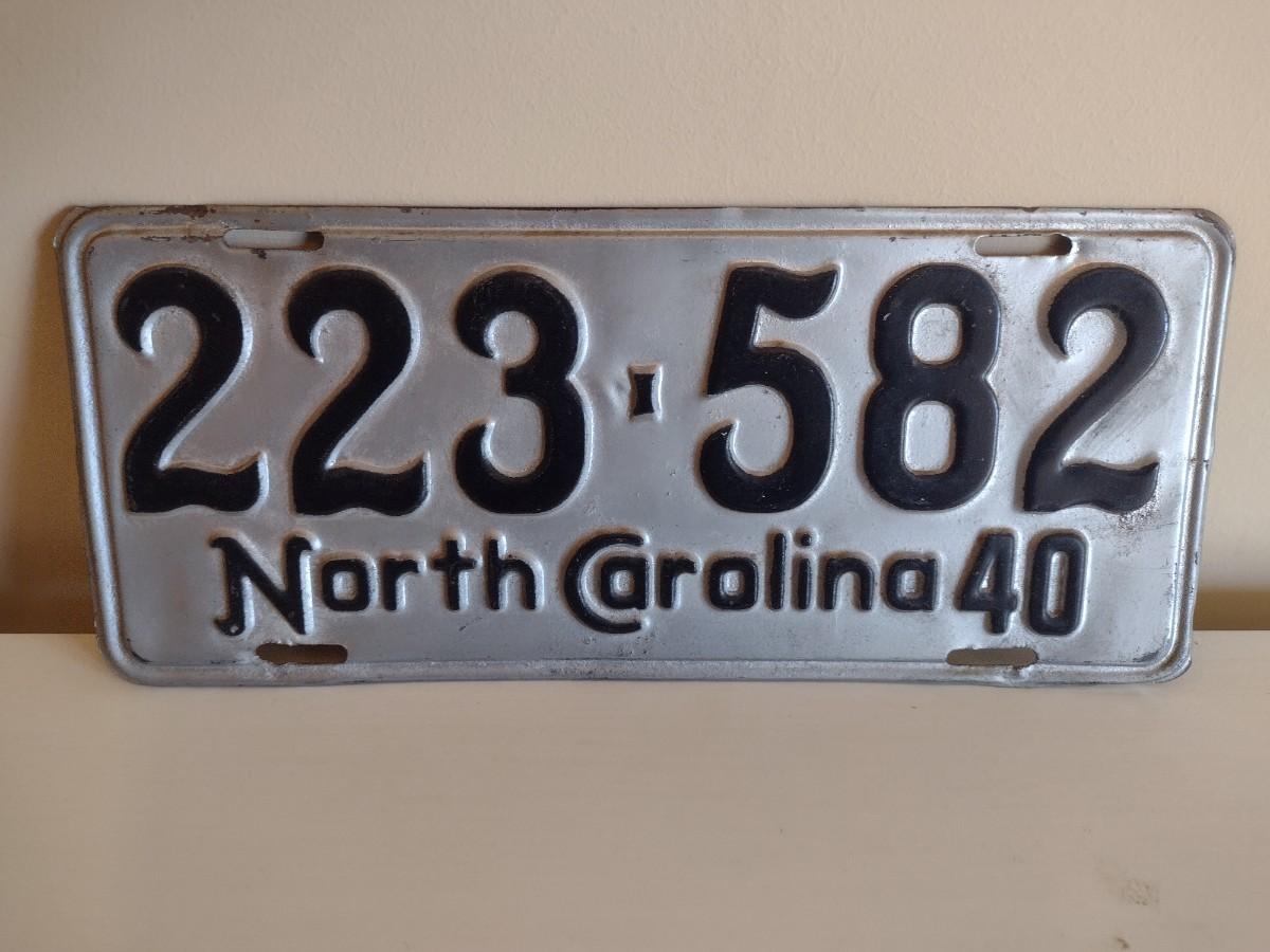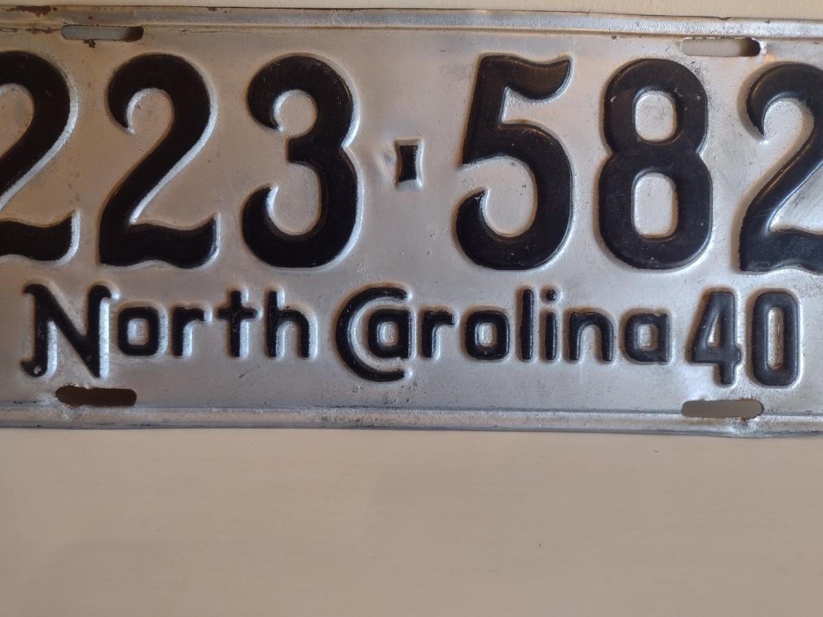 Vintage 1940 North Carolina License Plate looks as if it may have been restored at one point