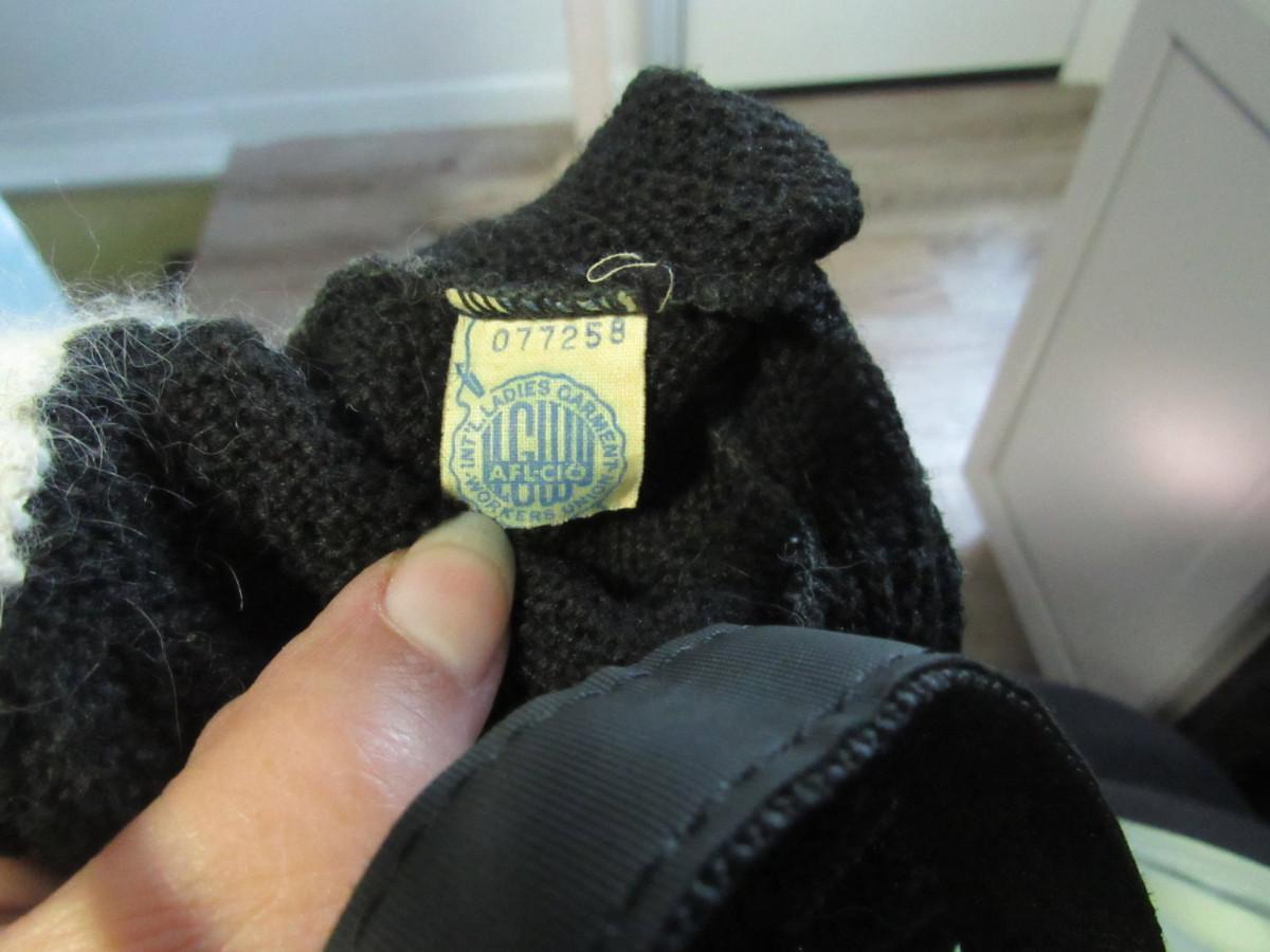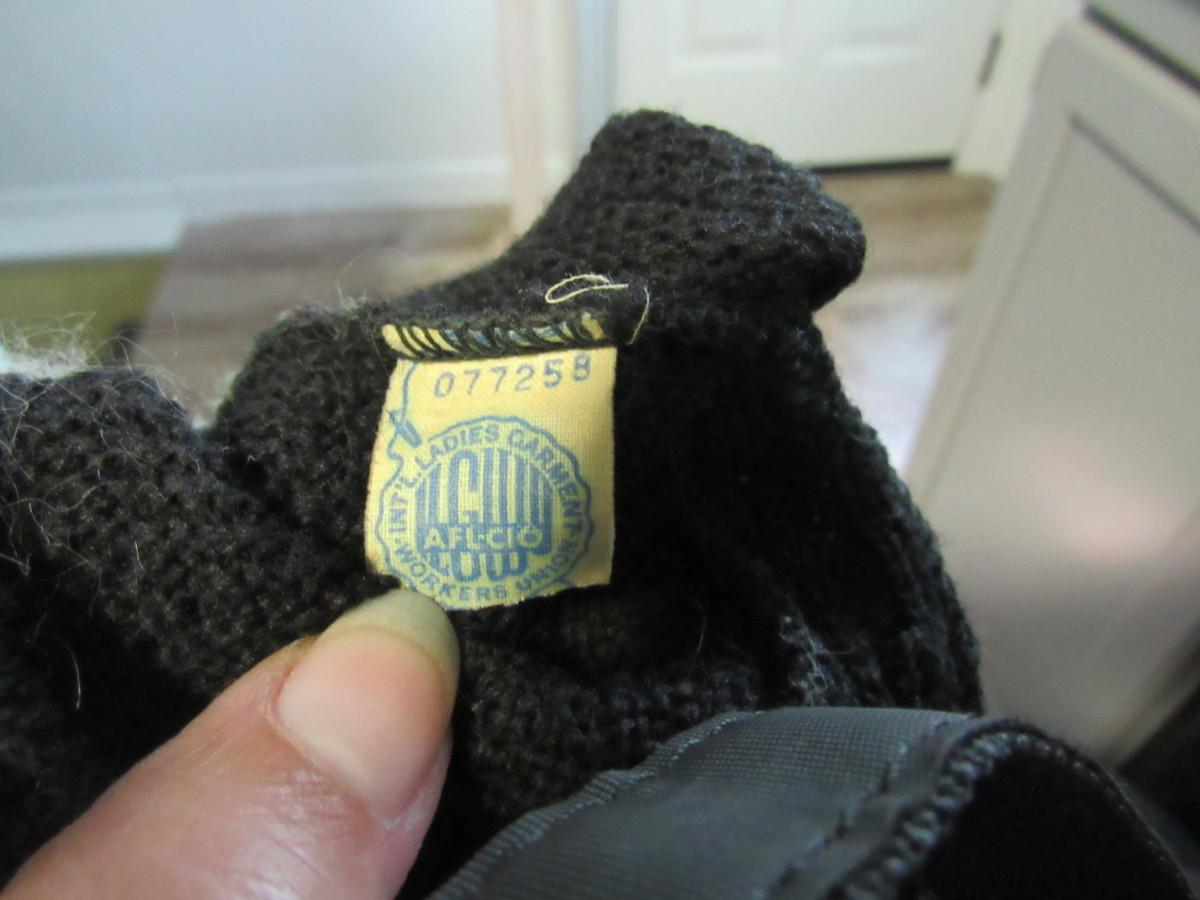 International Ladies Garment Workers Union label inside. Nice shape, I don't see any damage. Size unknown, 19" shoulder to seam, about 17" at chest. Shipping available at shipping cost plus $5.00 per box handling fee. No returns or refunds. See our terms for details.