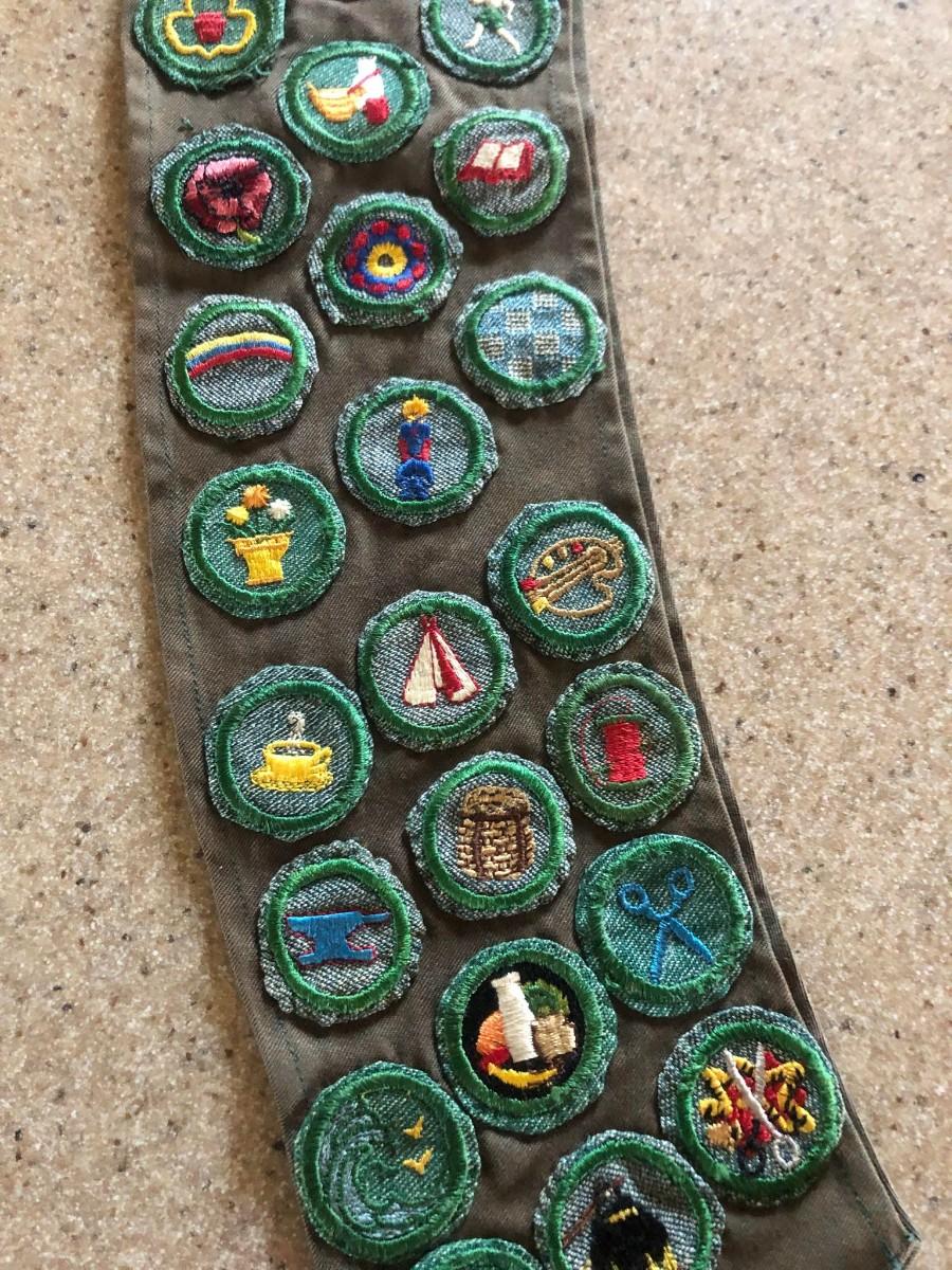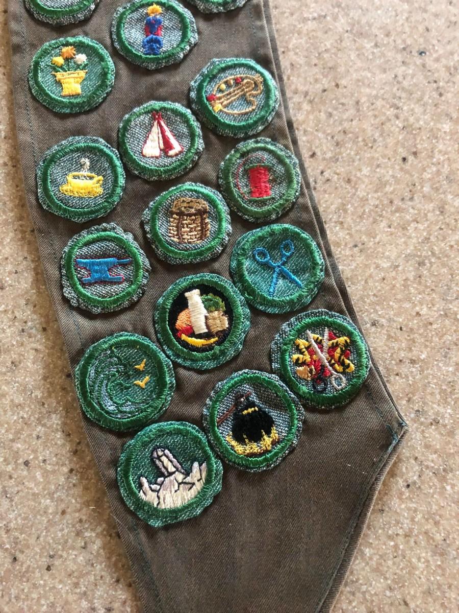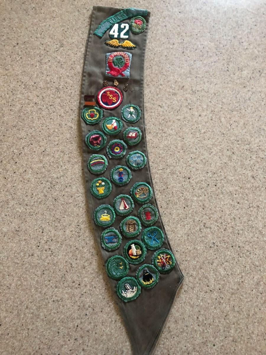 Vintage 1940's / 1950's Girl Scout Sash / Badges / Patches / Pins / Brownies Twill Cotton