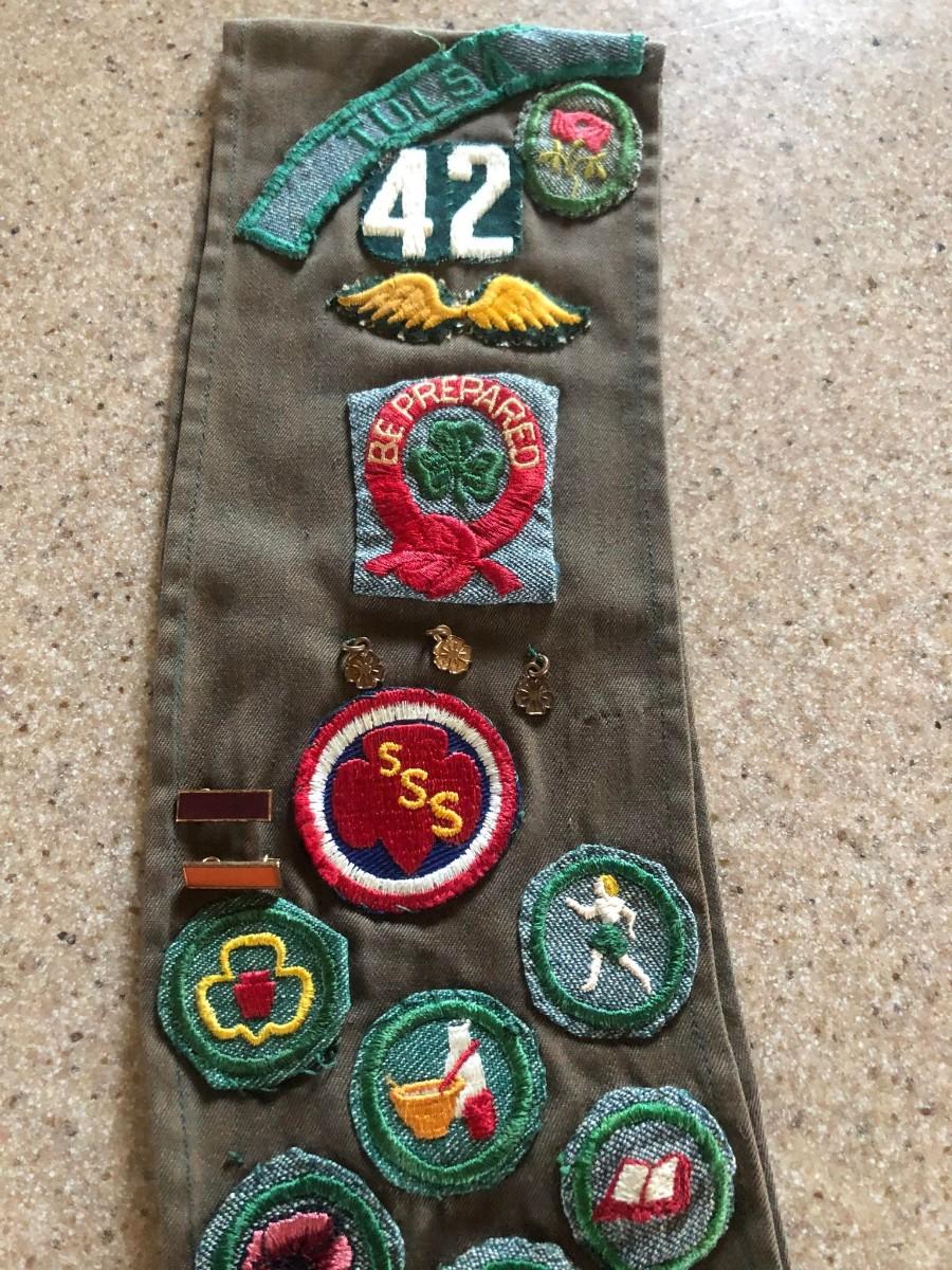 Vintage 1940's / 1950's Girl Scout Sash / Badges / Patches / Pins / Brownies Twill Cotton - Tulsa, OK