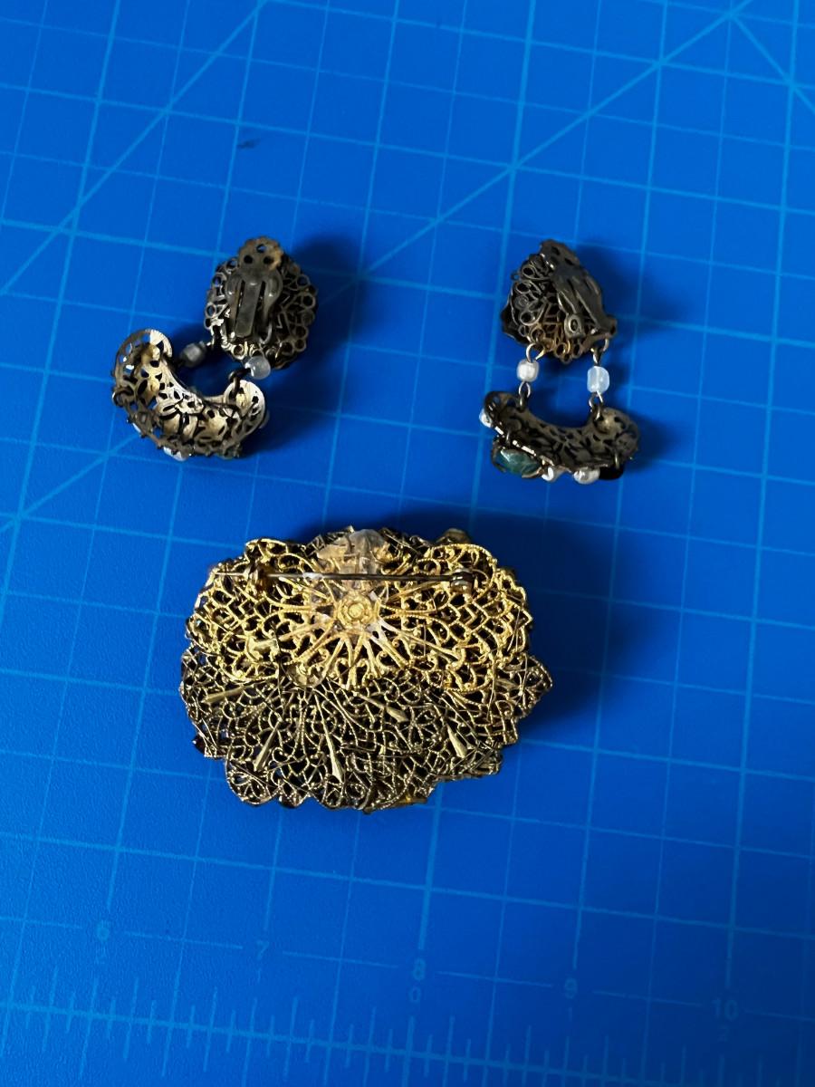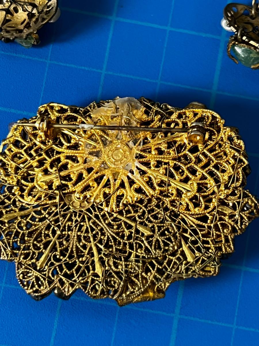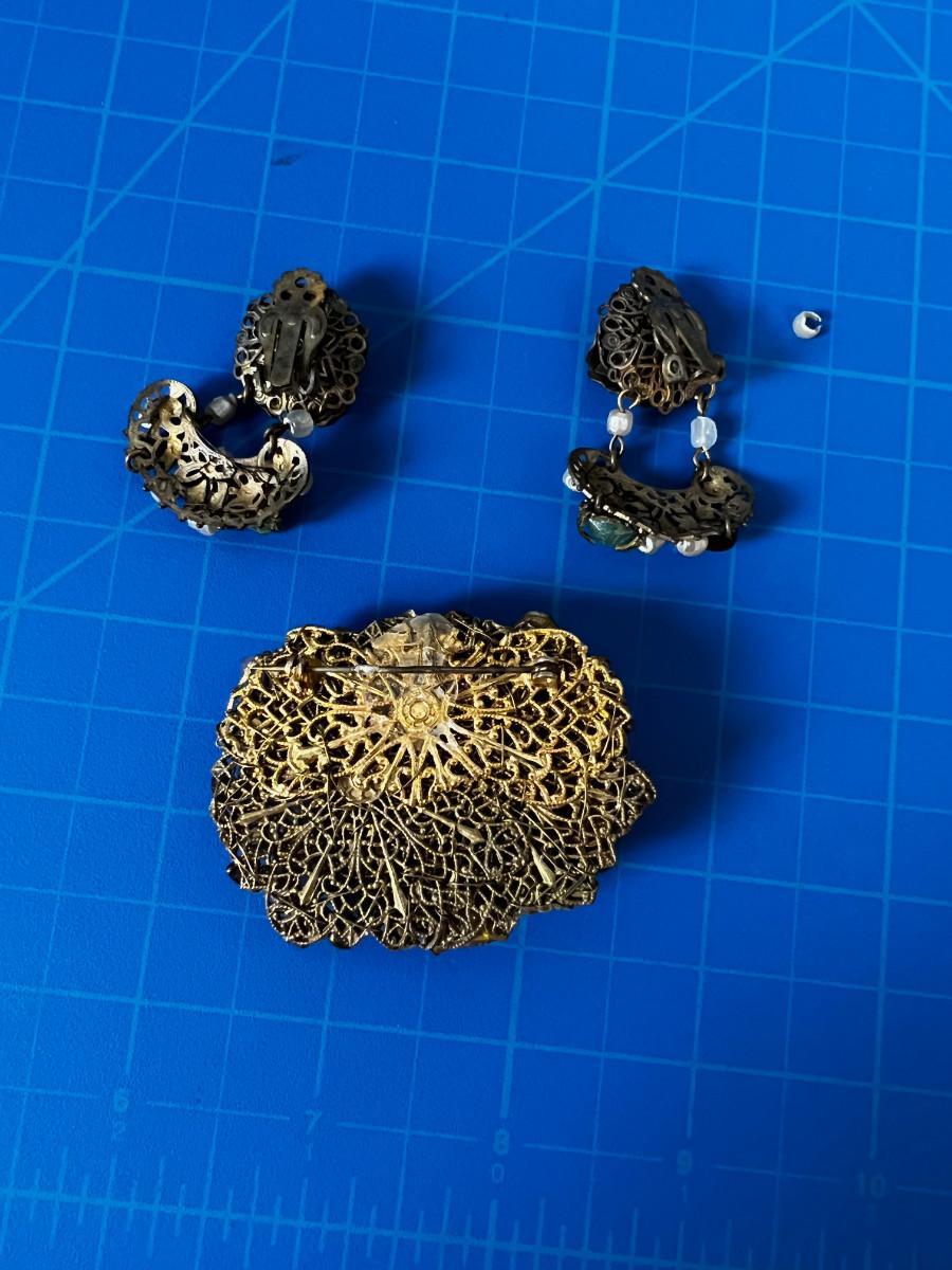Vintage 1940's Earing & Pin Set, Jade & Amethyst