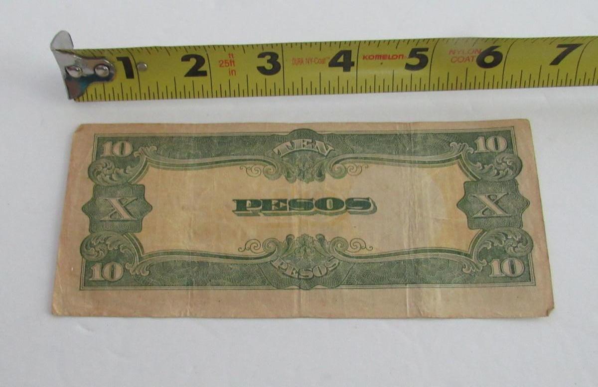 The Ten Pesos has some flat folds but is intact. It is from the Occupied Philippines WWI era. The bank note is in nice shape but is a repro. Shipping available at shipping cost plus $5.00 per box handling fee. See our terms for details.