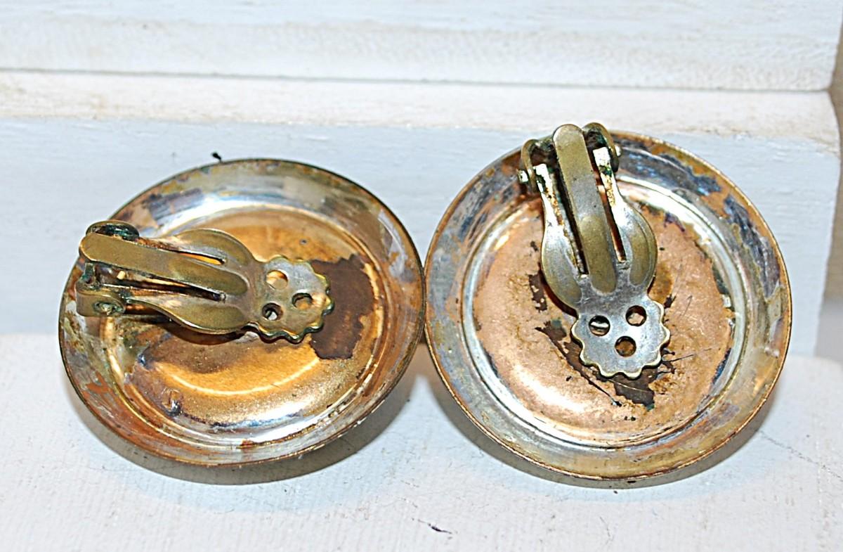 VINTAGE 1940's Large Pearl Style Earrings (1⅛" Diam.) with Small Rectangle Clear Stones Surround & Snap Clasp