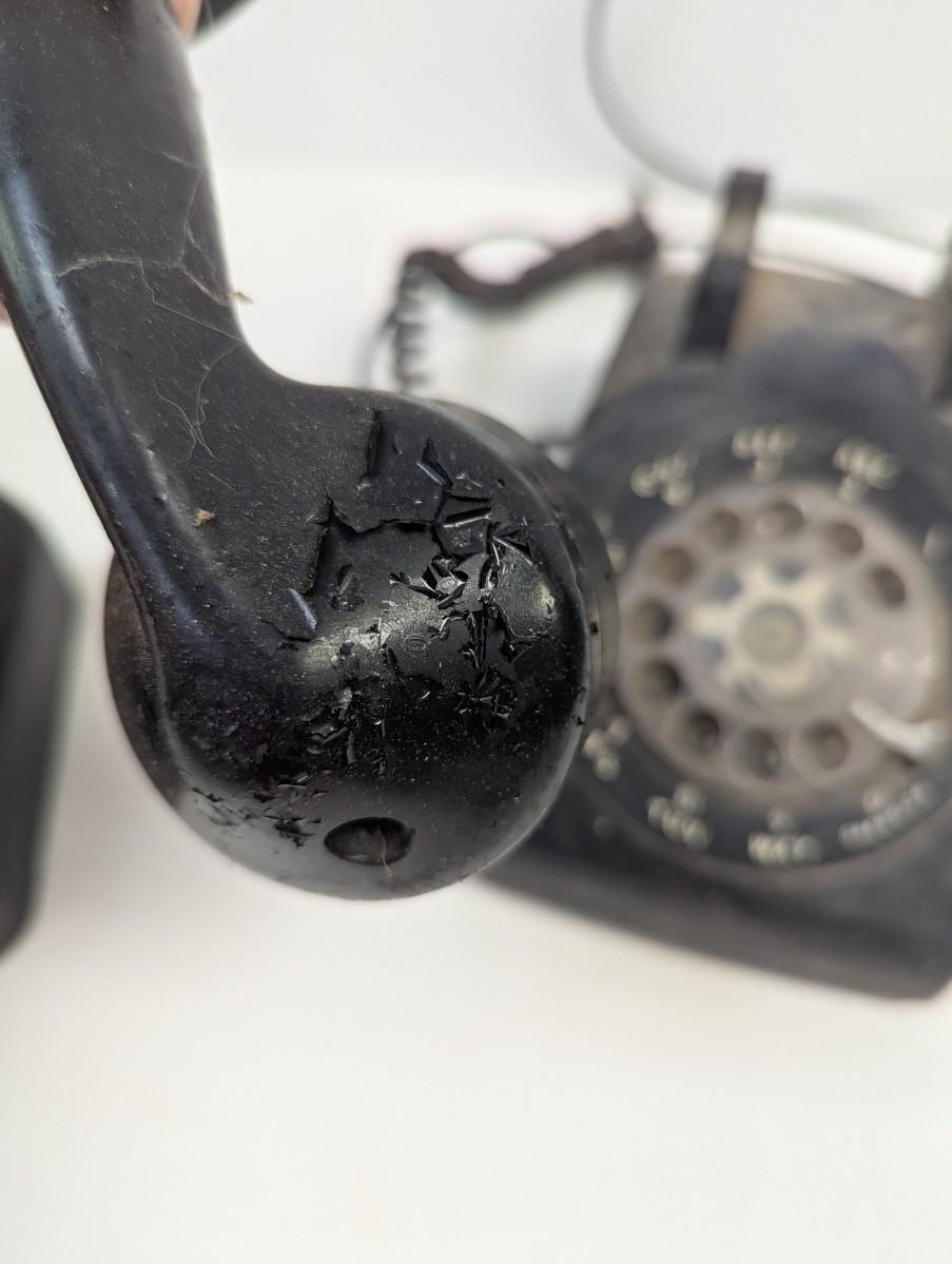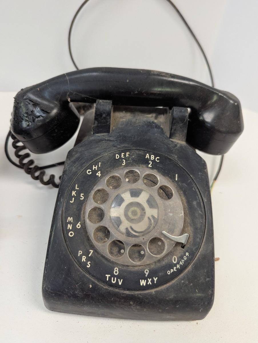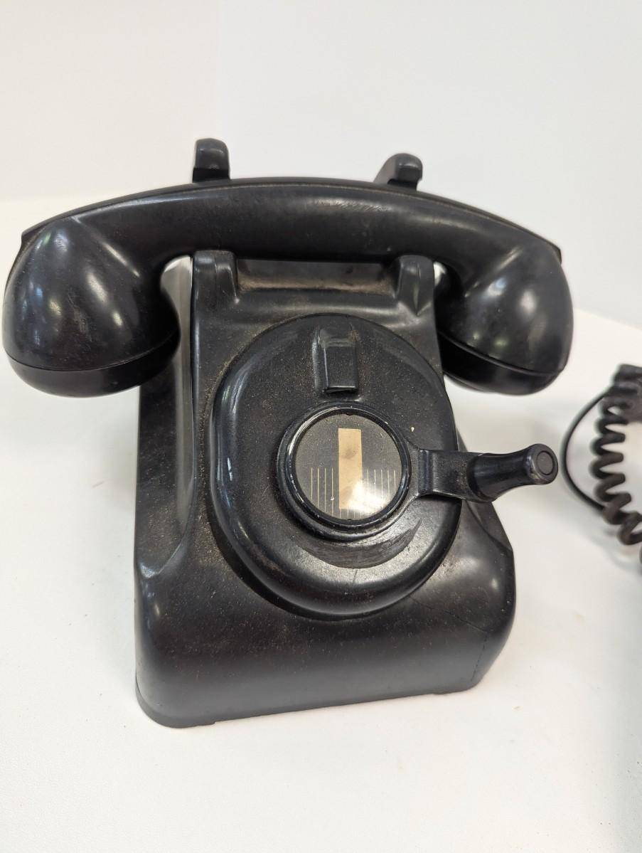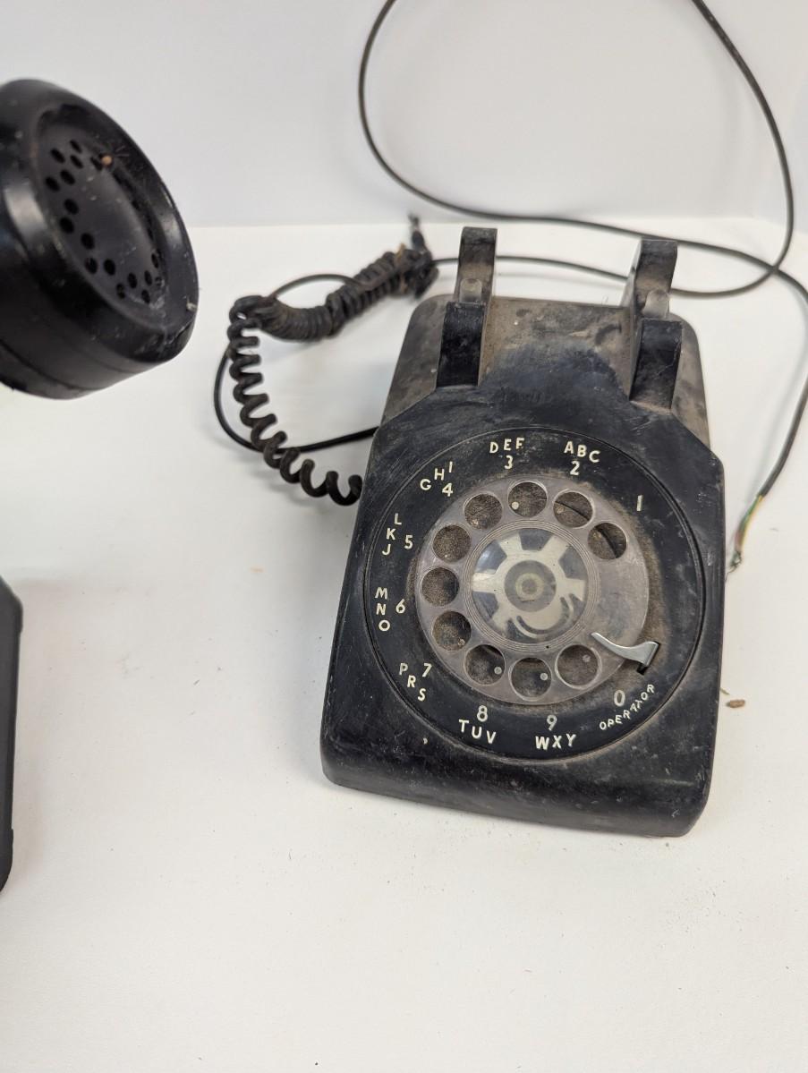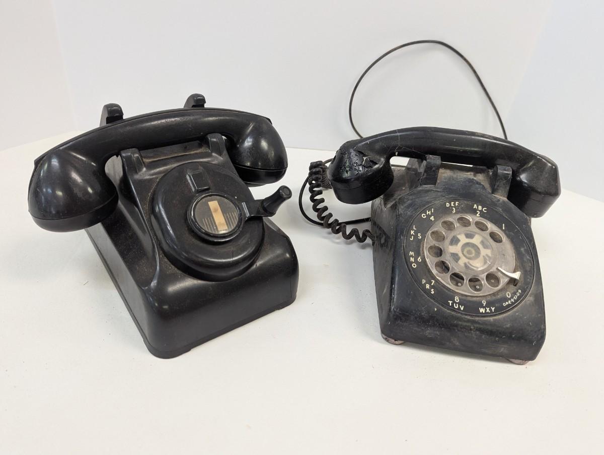 Vintage 1940s Leich Antique Desk Top Hand Crank Black Telephone & Western Electric Black Rotary Phone Untested