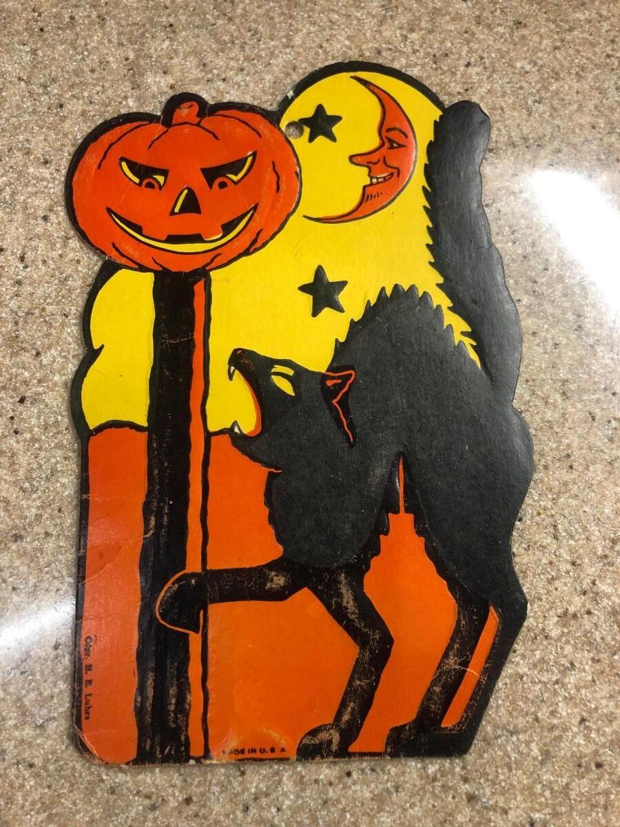 Vintage 1940's or 1950's HE LUHRS BEISTLE Diecut Black Cat Paper Halloween