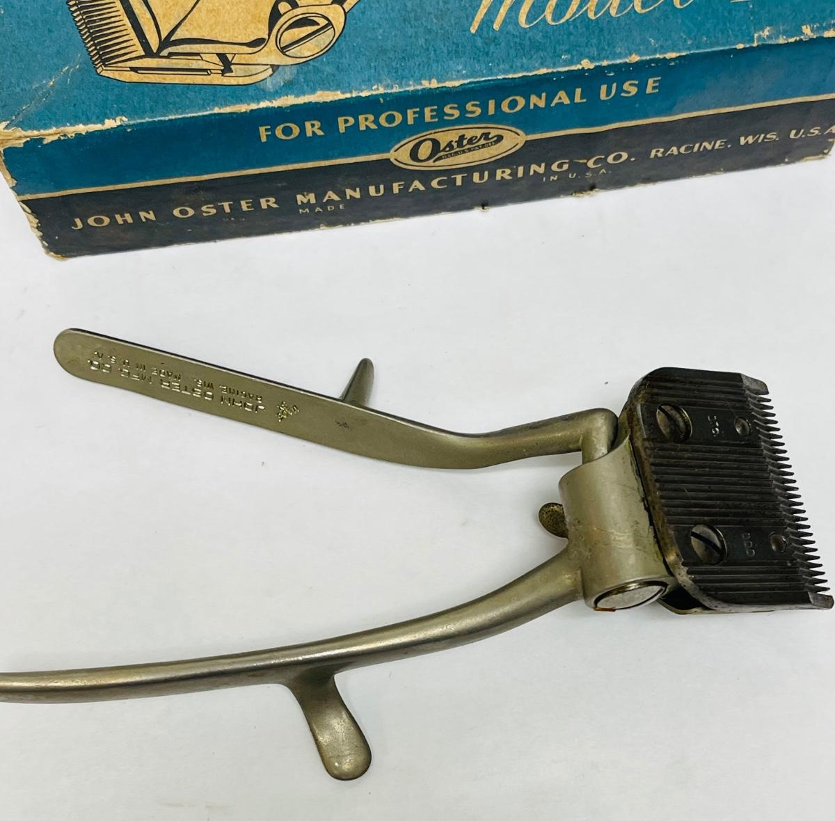 Manual hair clippers from the John Oster Manufacturing Company of Racine Wisconsin. Excellent condition considering the age.