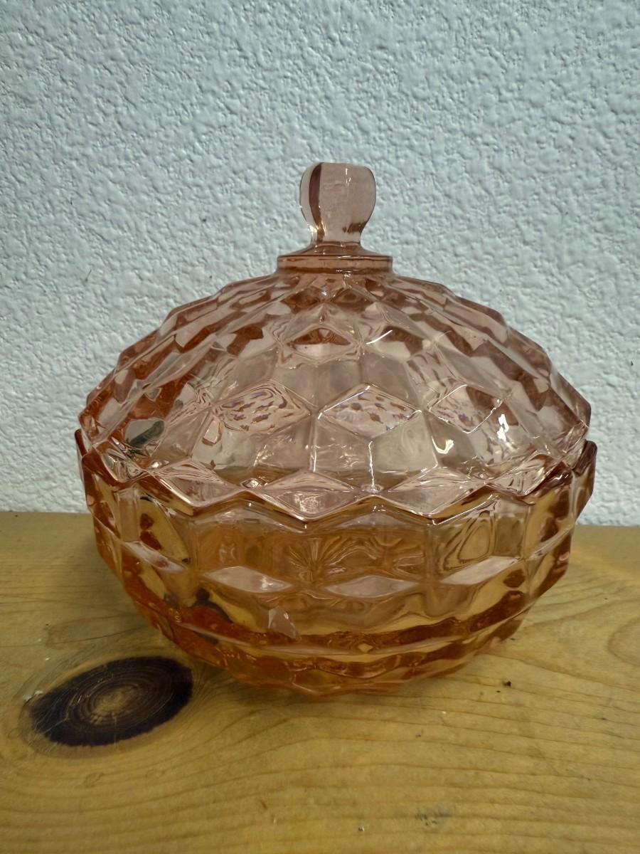 Vintage 1940’s Pink Jeannette “Cubist” Fostoria Depression Glass Lidded Bowl