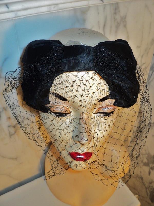 A 1940's church hat Demi Chapeau with a double large bow at the top with veil.